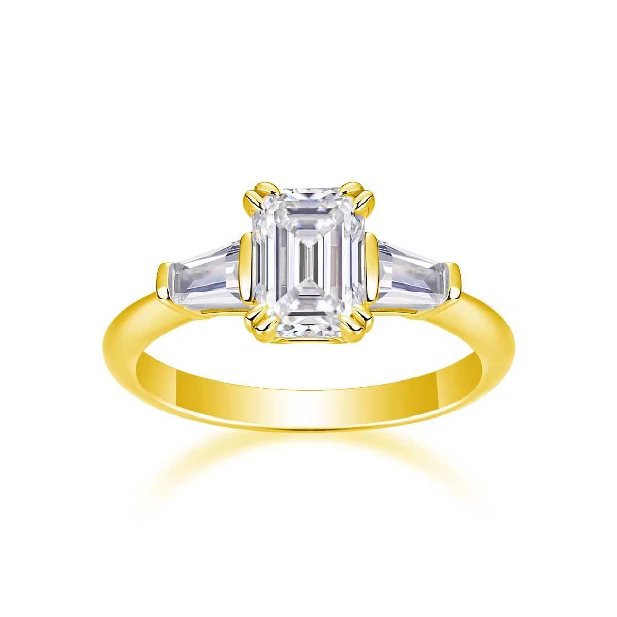 Moissanite Emerald 925 Sterling Silver Gold Plated Four-Claw Three-Stone Rings