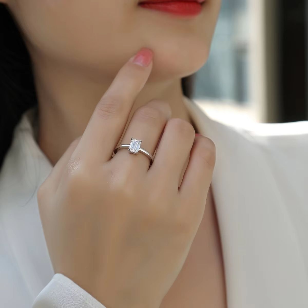 Moissanite Emerald Bridal Set Sterling 925 Silver Eternity Custom Silver Rings