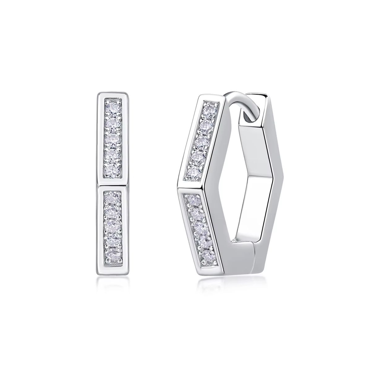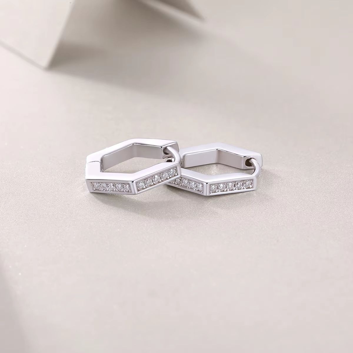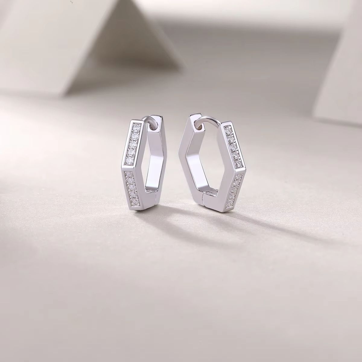 Moissanite Geometric Shape Hoop Earring Moissanite Hexagonal Hoop Earrings Unique Design Hexagonal 925 Sterling Silver Earring
