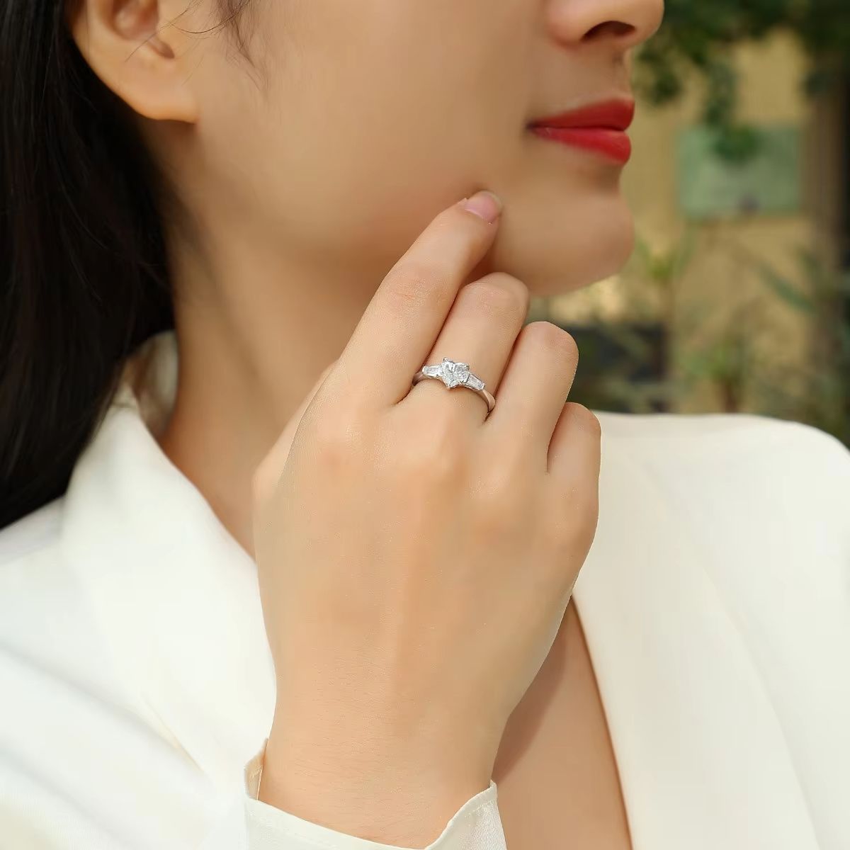 Moissanite Heart Confession Design S925 Silver Three Stone Closed Rings