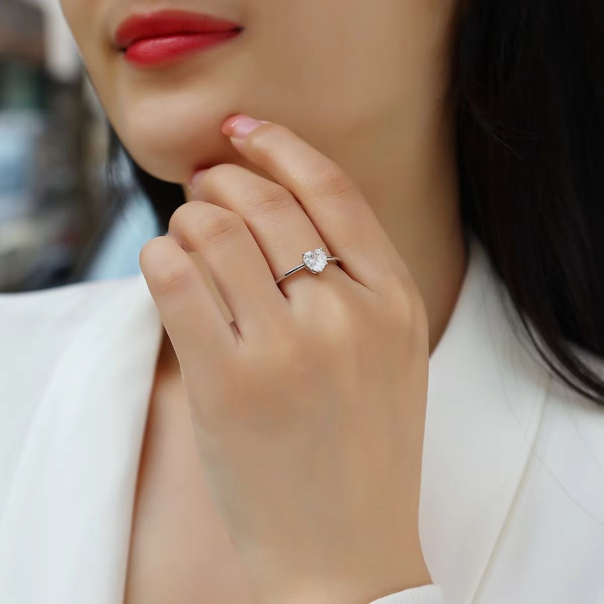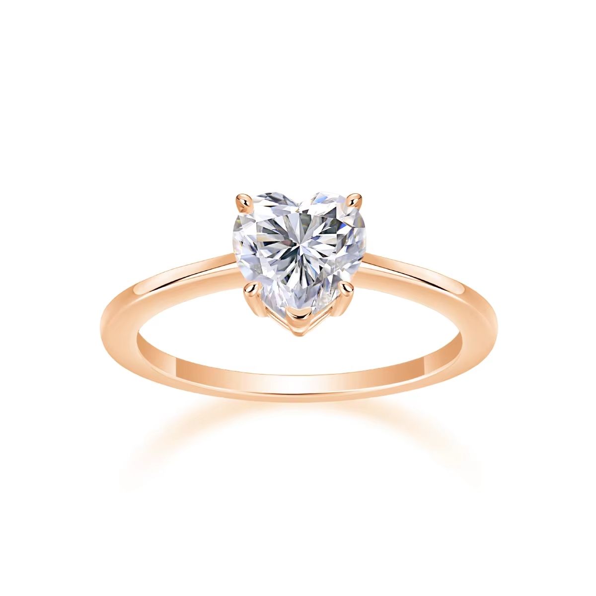Moissanite Heart-Shaped 925 Sterling Silver Rose Gold Engagement Wedding Rings