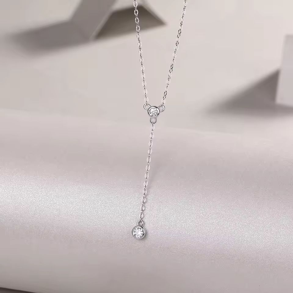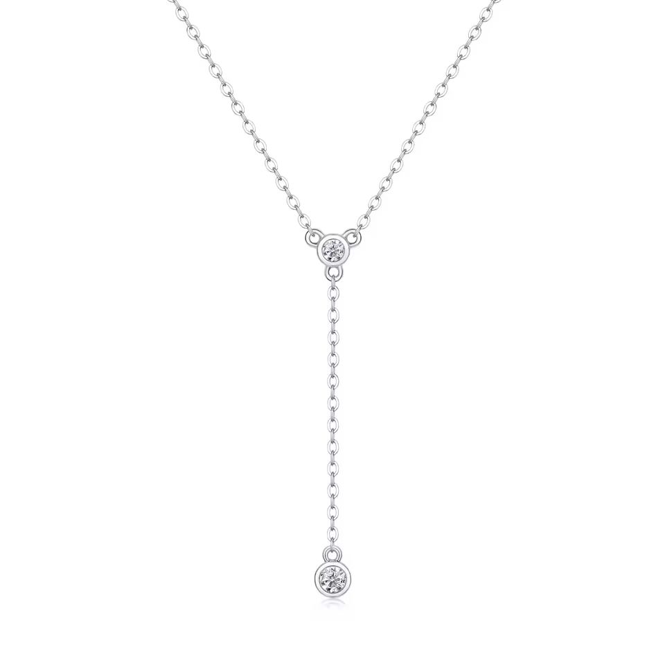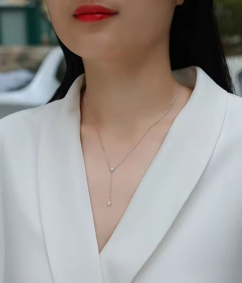 Moissanite Necklace for Women Drop Pendant Y Shape 925 Sterling Silver Platinum Plated Elegant Jewelry GRA Certificate
