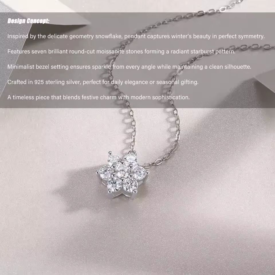 Moissanite Necklace for Women Snowflake Pendant 925 Sterling Silver 18K Gold Plated Simple Elegant Jewelry GRA Certificate