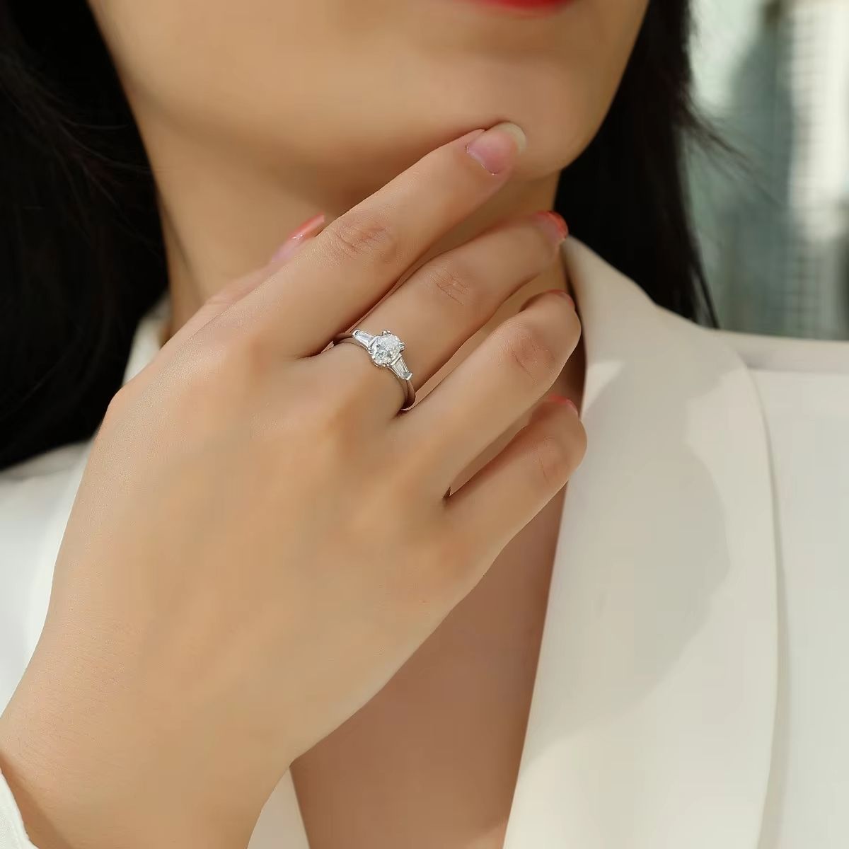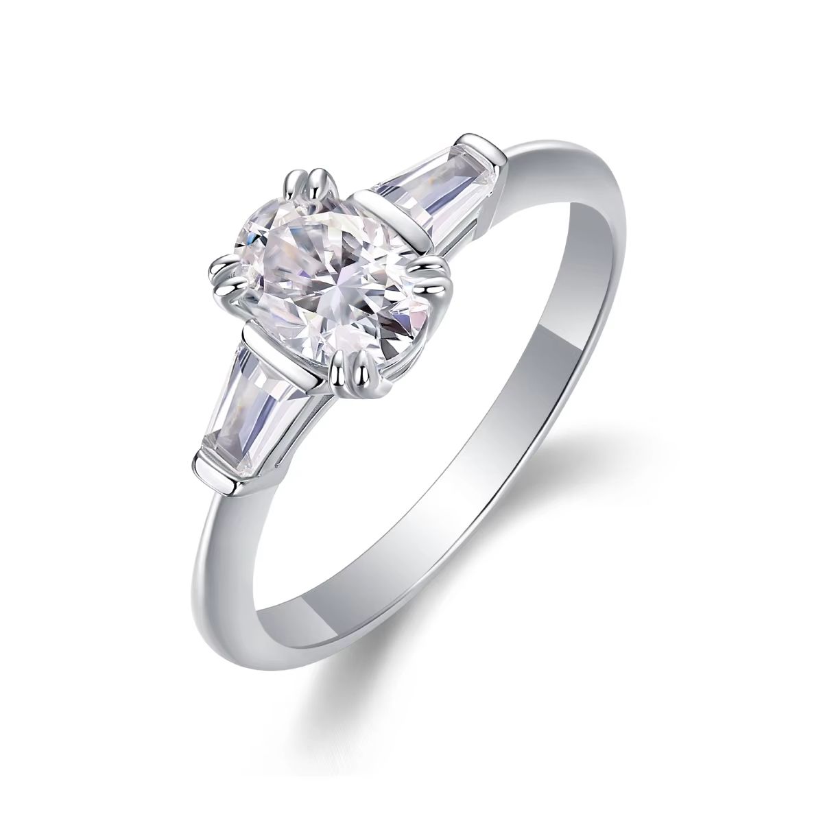 Moissanite Oval 925 Silver Women's Rings Zirconia Stone Three Stone Ring