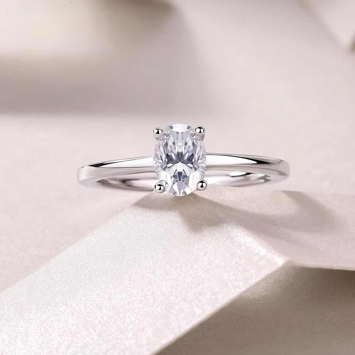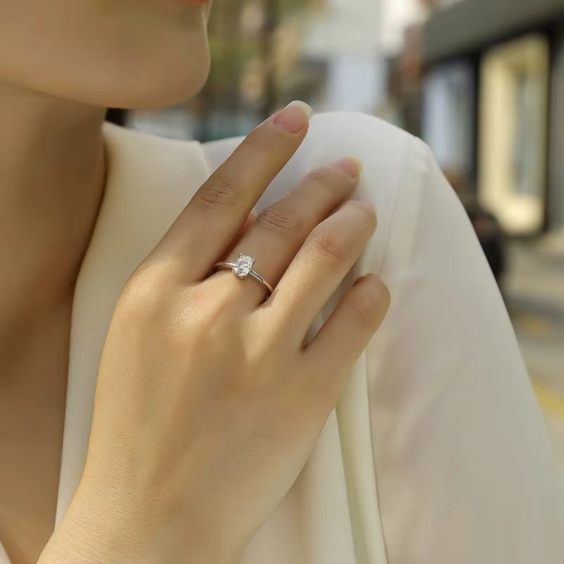 Moissanite Oval Classic S925 Sterling Silver Cut Engagement Promise Ring
