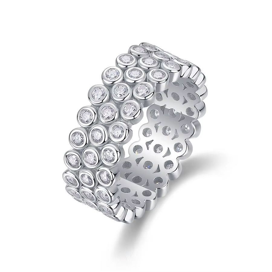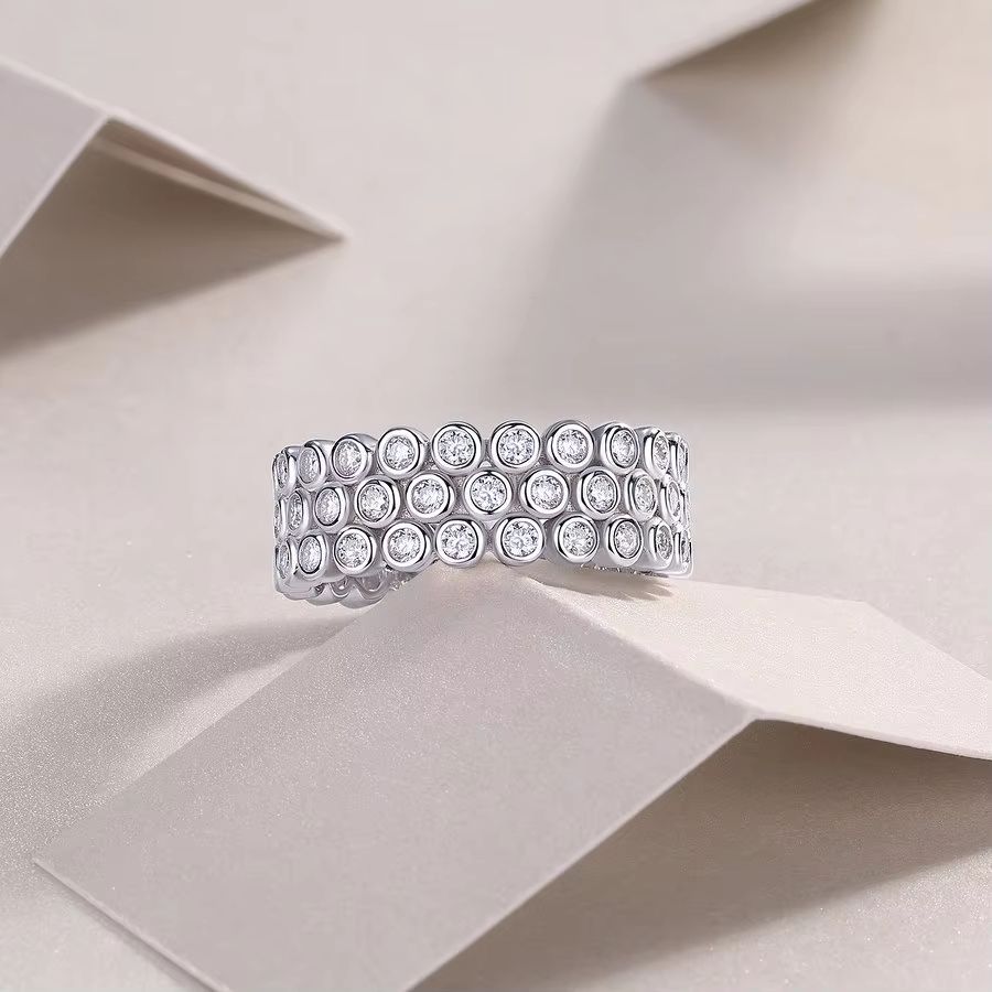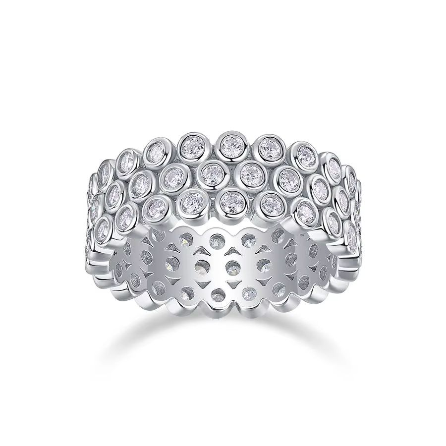 Moissanite Ring 1.5CTW Full Eternity 925 Sterling Silver 18K Gold Plated Wide Band Multi-Row Statement Jewelry for Women