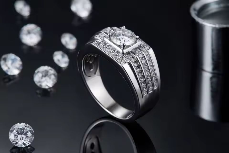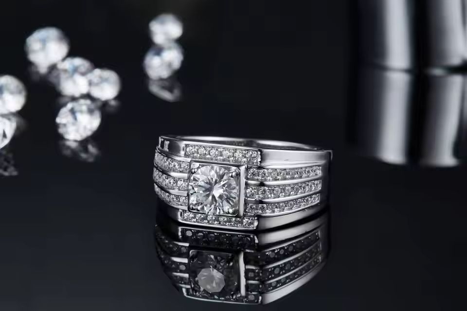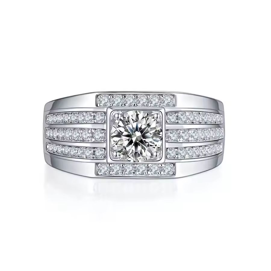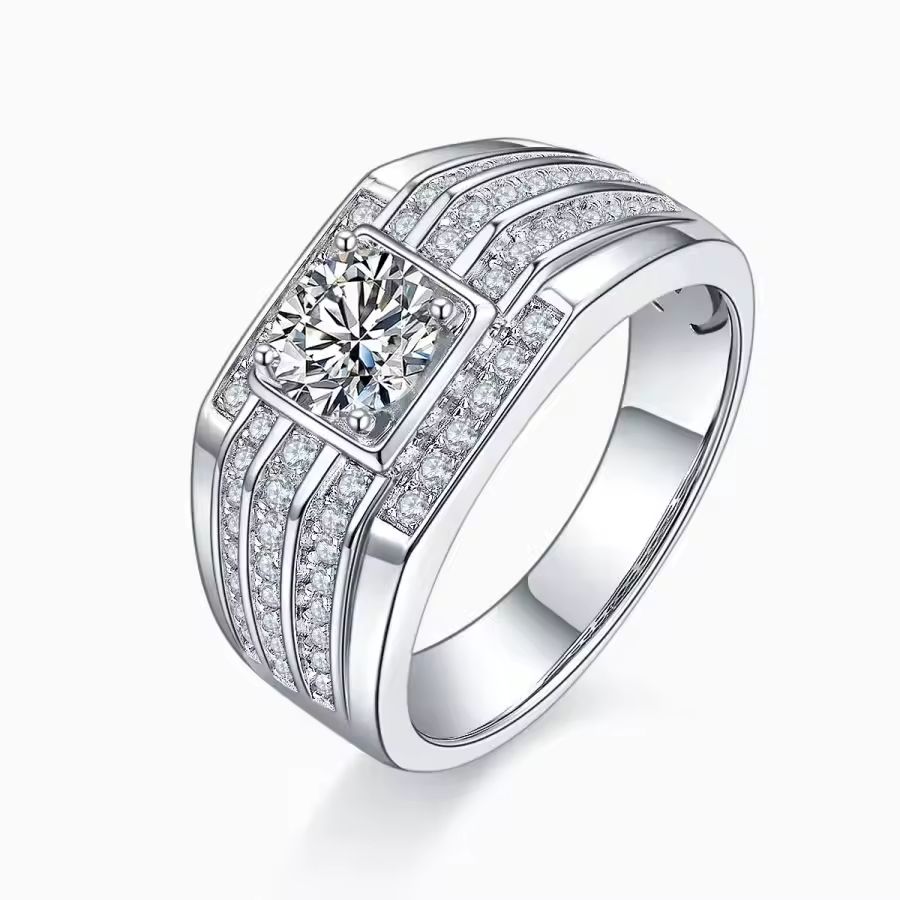 Moissanite Ring 1 ct Men's 925 Silver Luxury Engagement & Wedding Band Anniversary & Birthday Gift