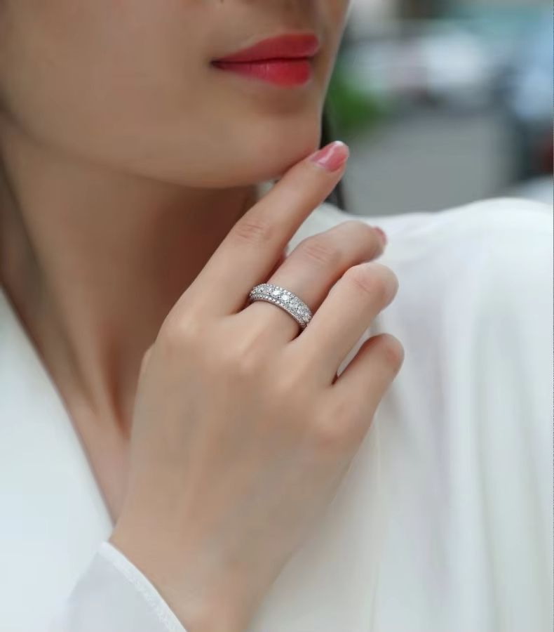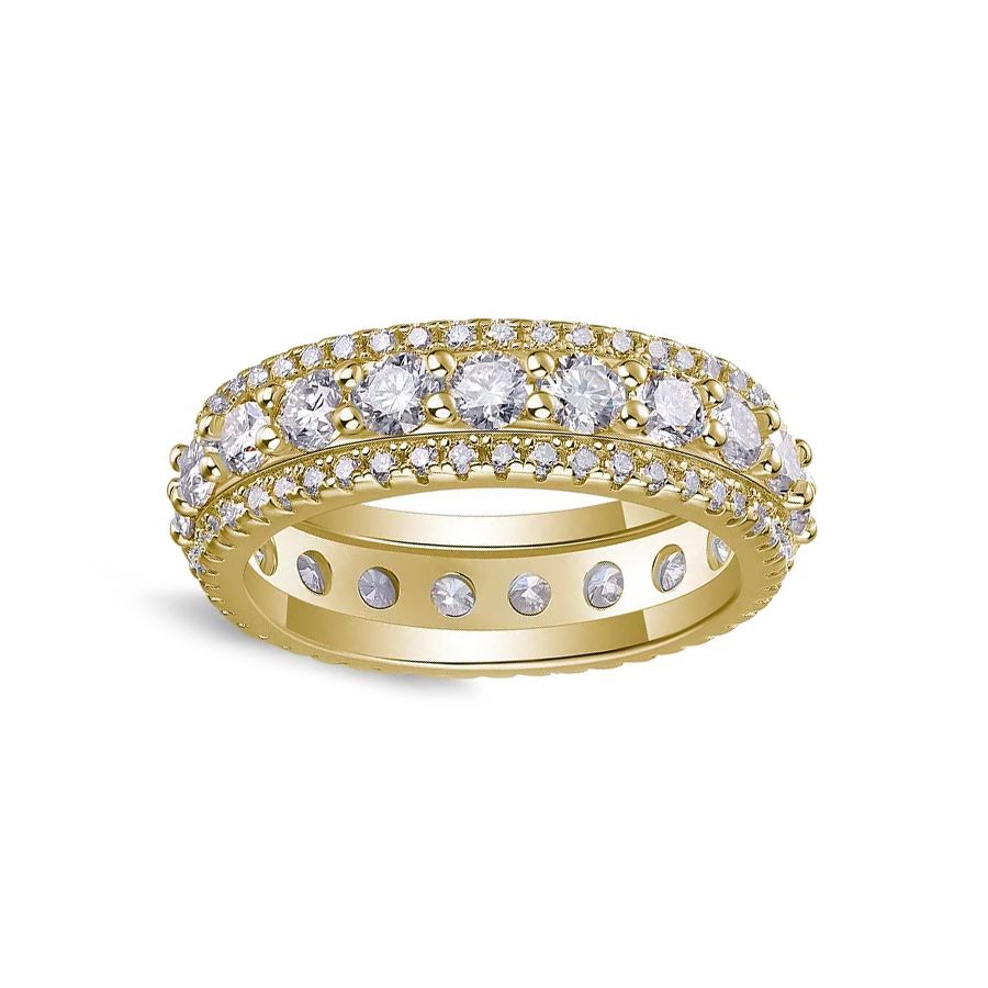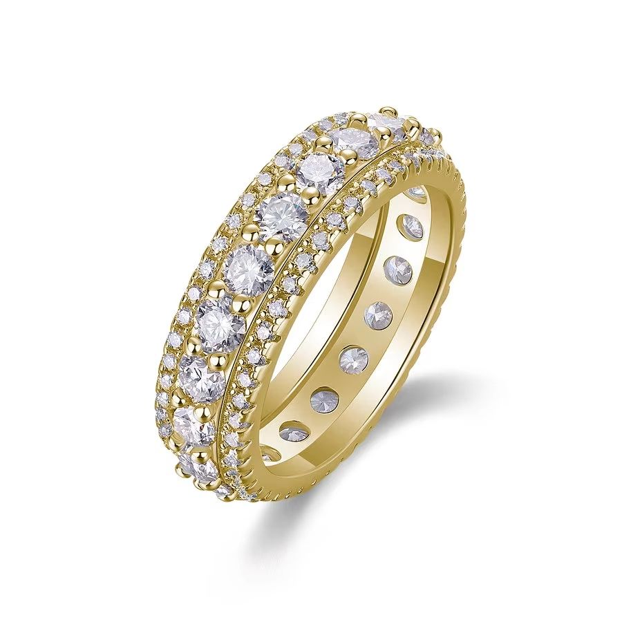 Moissanite Ring 2.572CTW Full Eternity 925 Sterling Silver 18K Gold Plated 3 Row Sparkling Band Jewelry for Women's Wedding