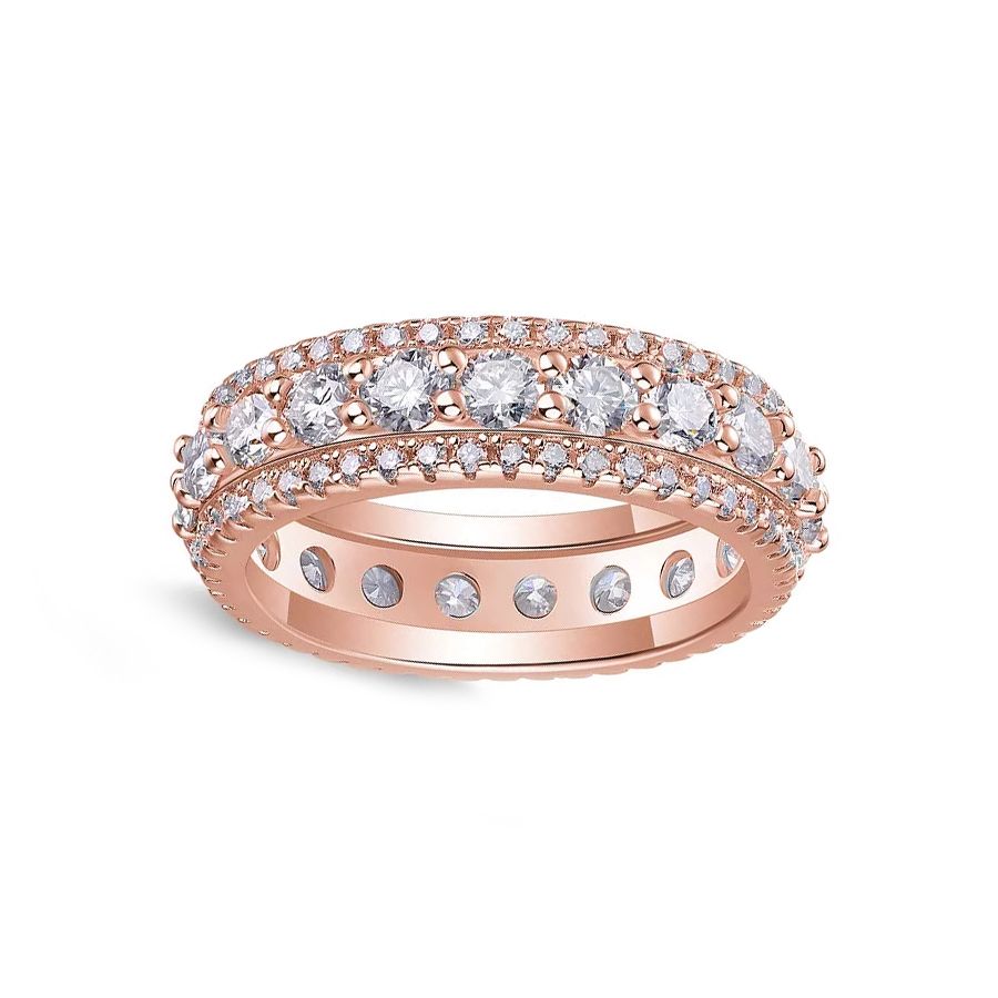 Moissanite Ring 2.572CTW Full Eternity 925 Sterling Silver 18K Gold Plated 3 Row Sparkling Band Jewelry for Women's Wedding