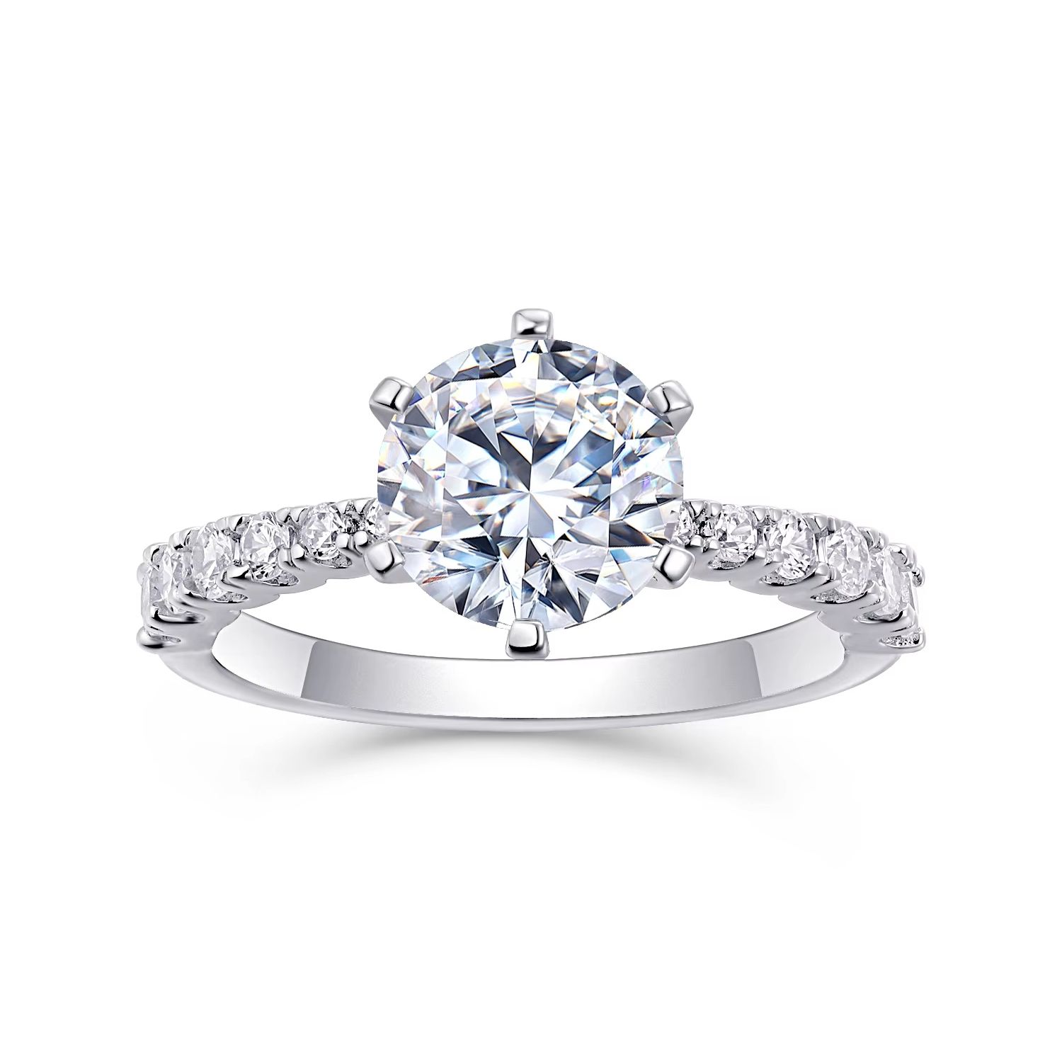 Moissanite Ring 2ct Round Brilliant Wedding Engagement Ring S925 Silver White Color Rhodium Plated with GRA Certificate Ring