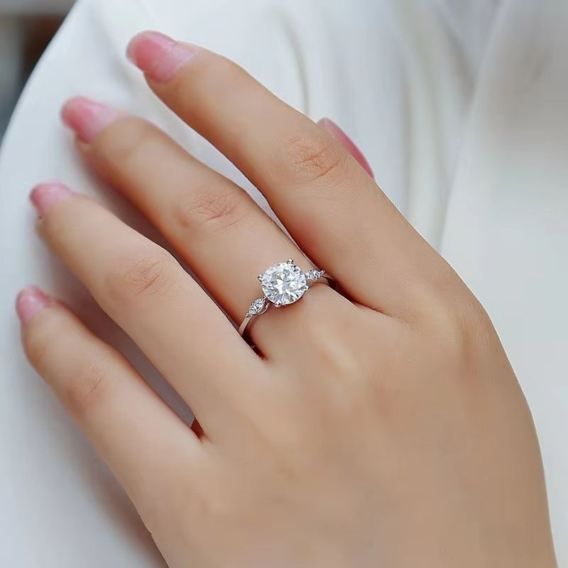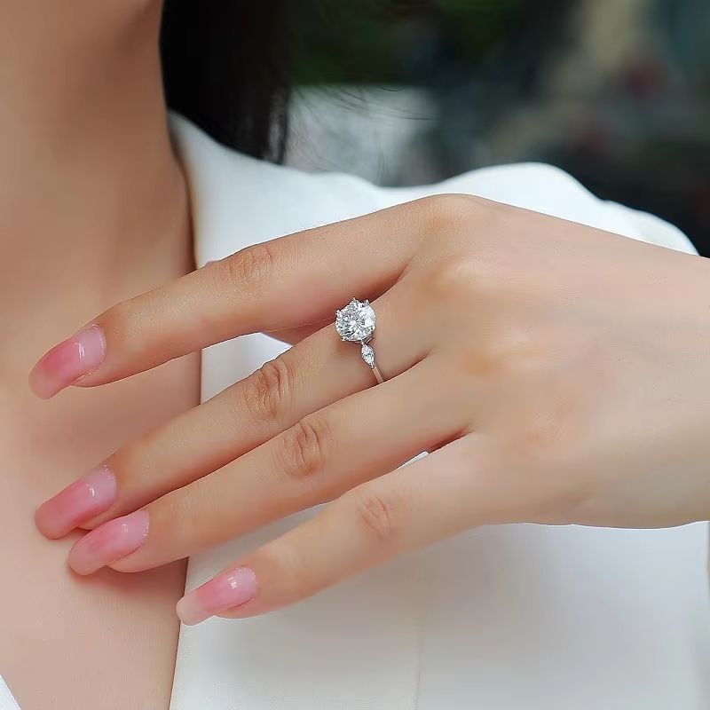 Moissanite Ring Round Brilliant Cut S925 Sterling Silver Promise Ring Hypoallergenic Wedding Jewelry Ring