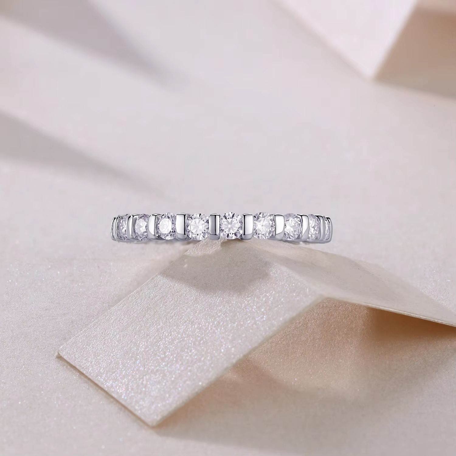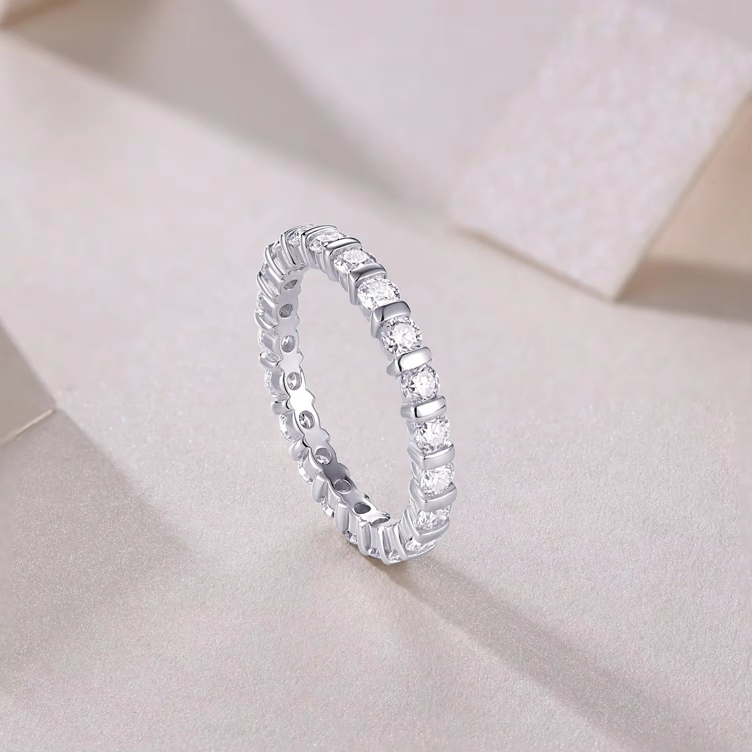 Moissanite Rings Pave Setting Women 925 Silver Rings Gemstone Eternity Rings