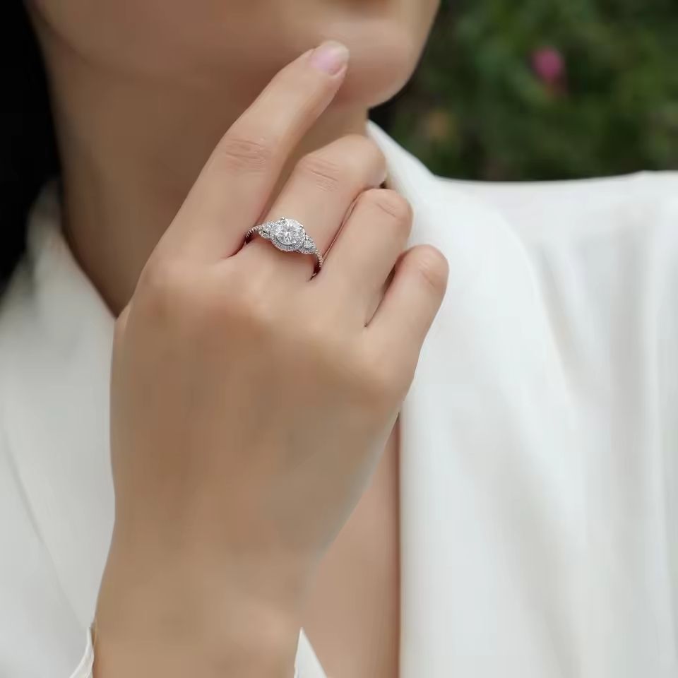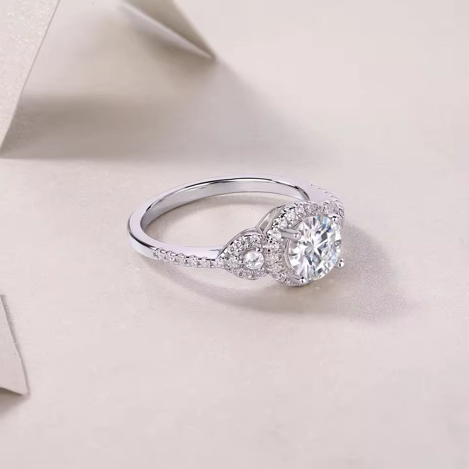 Moissanite Round 1ct Classic Wedding Engagement Ring 925 Sterling Silver