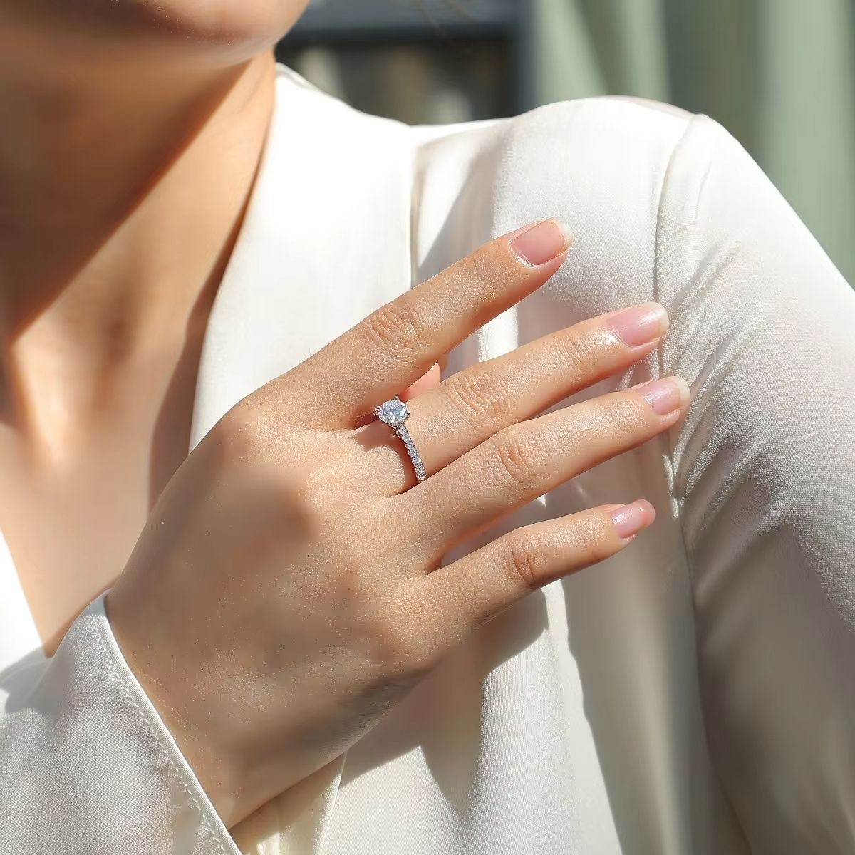 Moissanite Round 925 Silver Engagement Wedding Ring