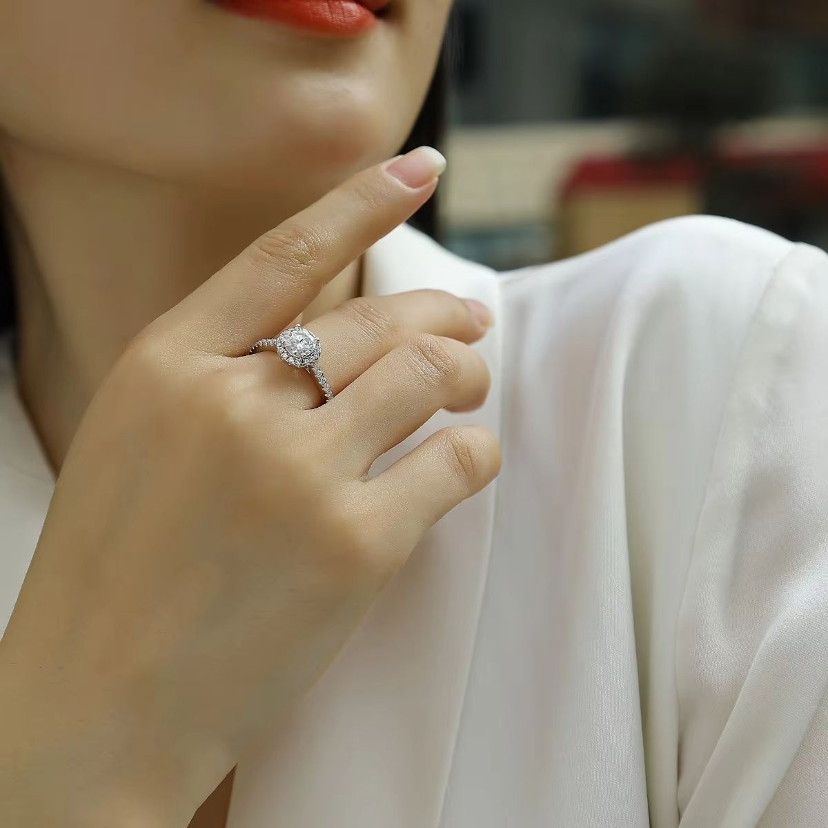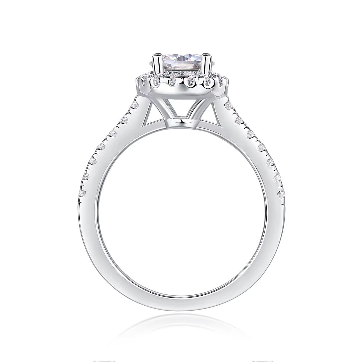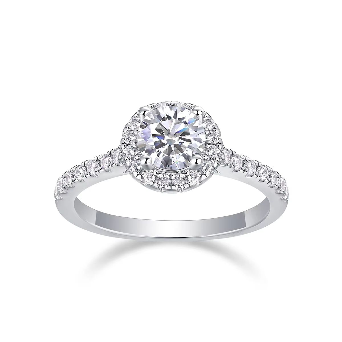 Moissanite Round Classic Design Engagement Rings with Stone Halo Ring for Women
