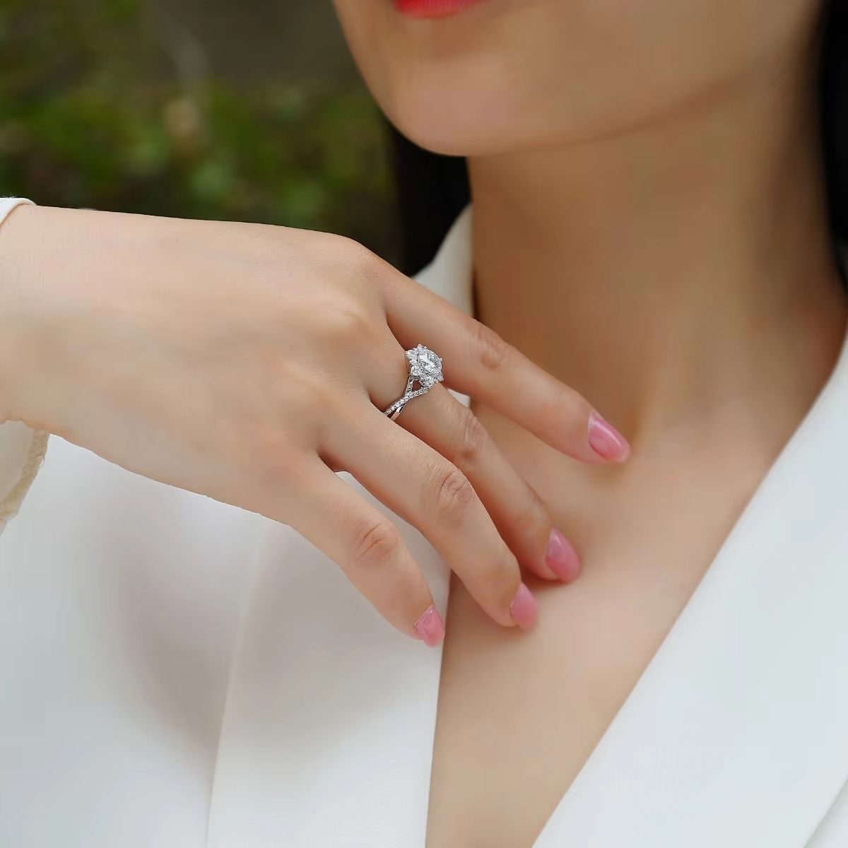 Moissanite Round Custom Wedding Engagement Rings 925 Sterling Silver