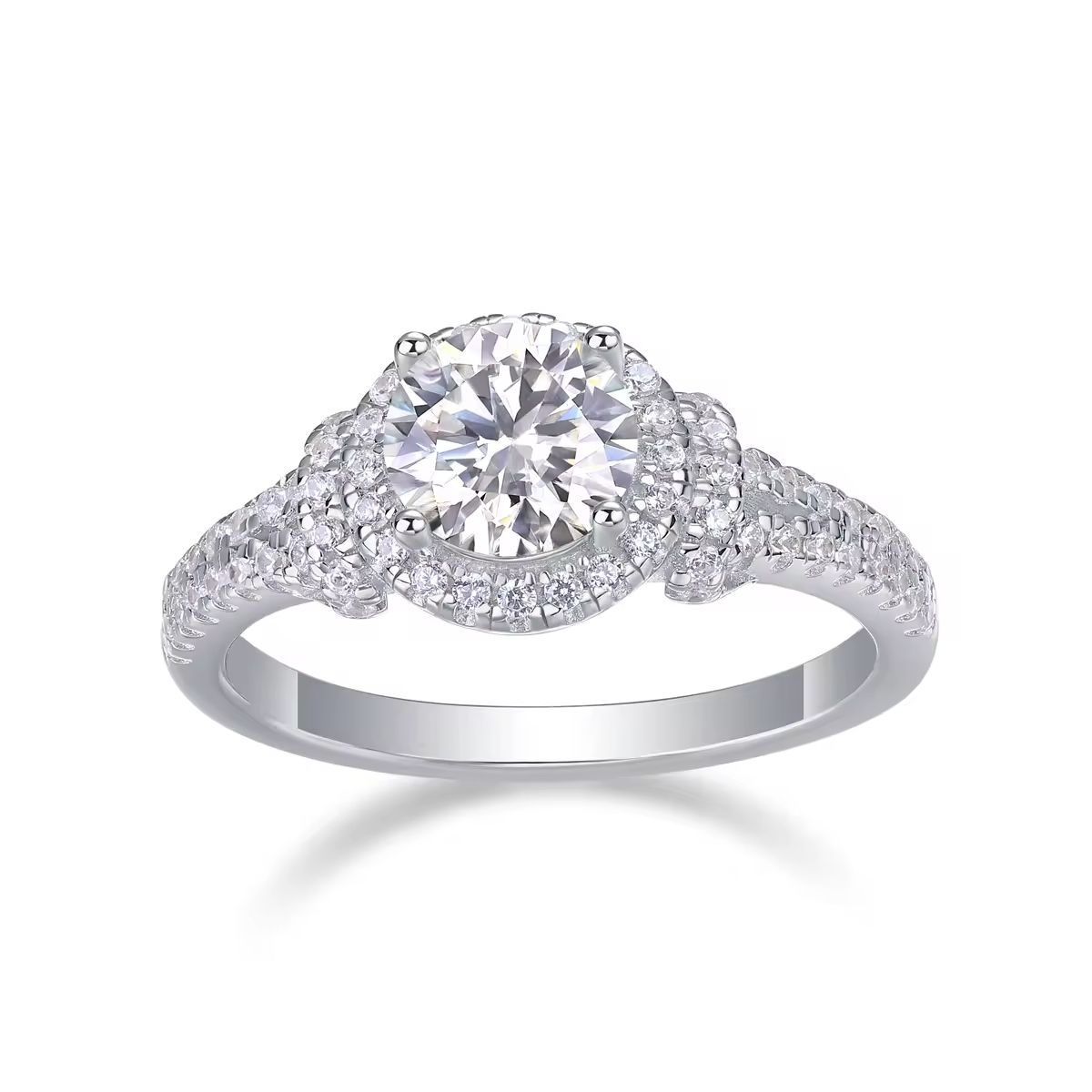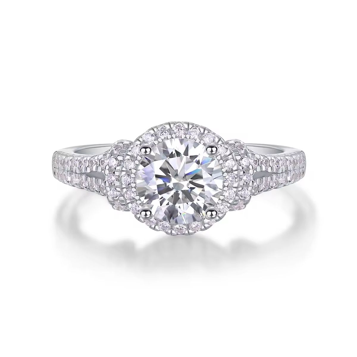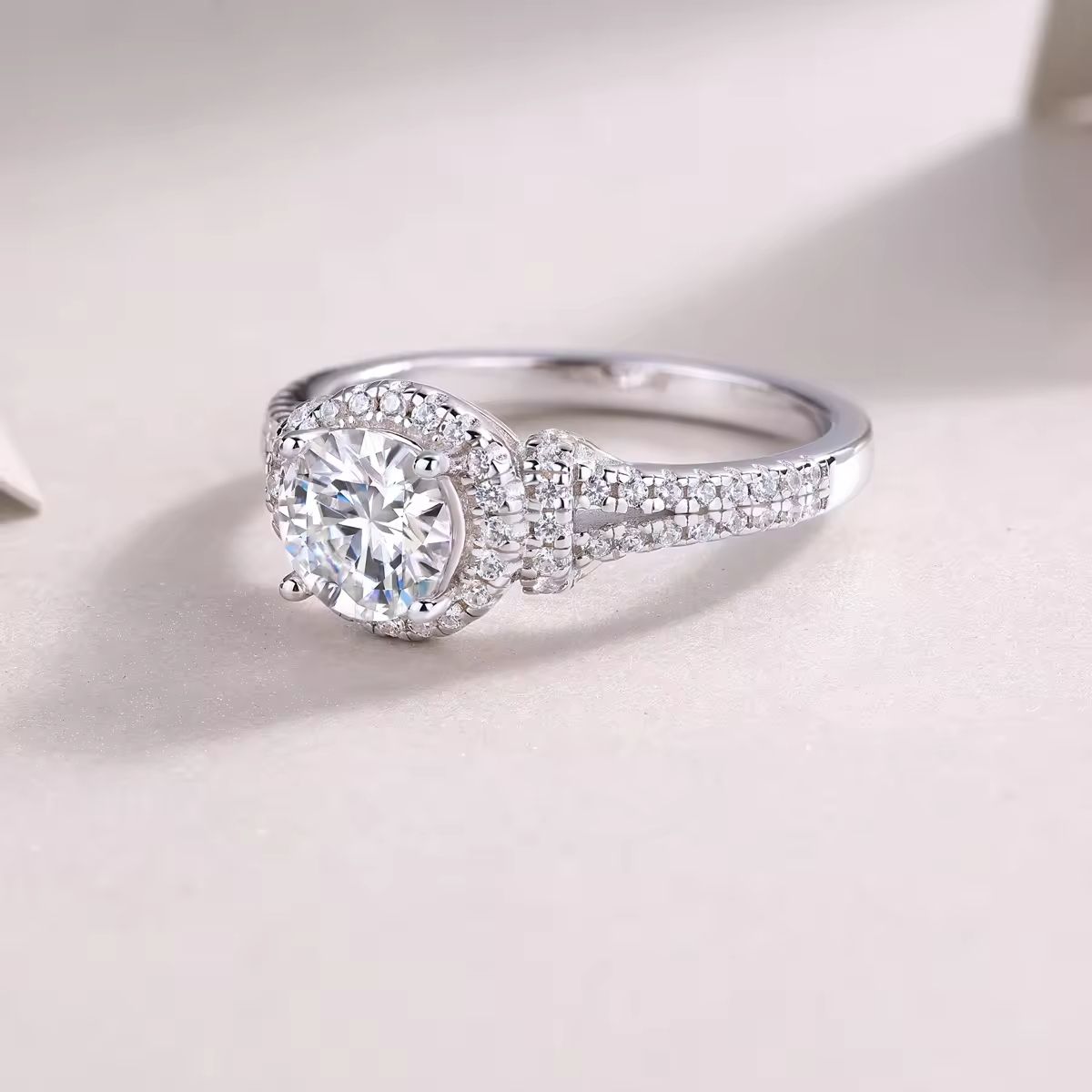 Moissanite Round Ring 925 Silver Jewelry Women Wedding Technology Party