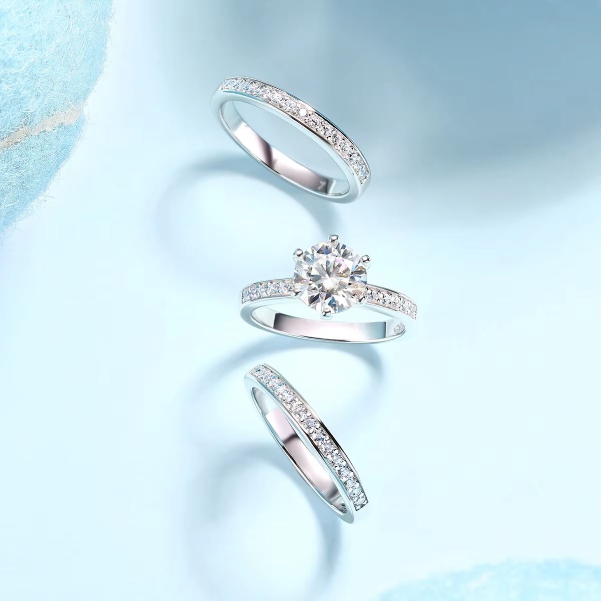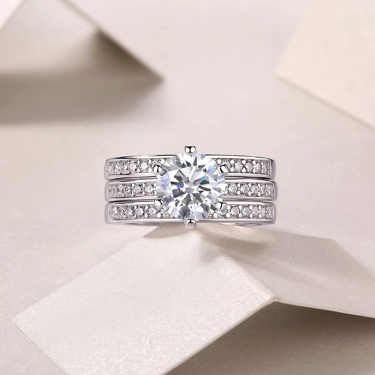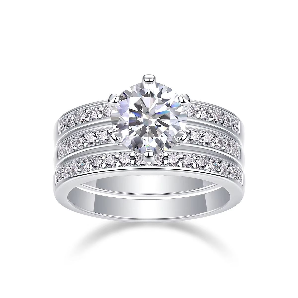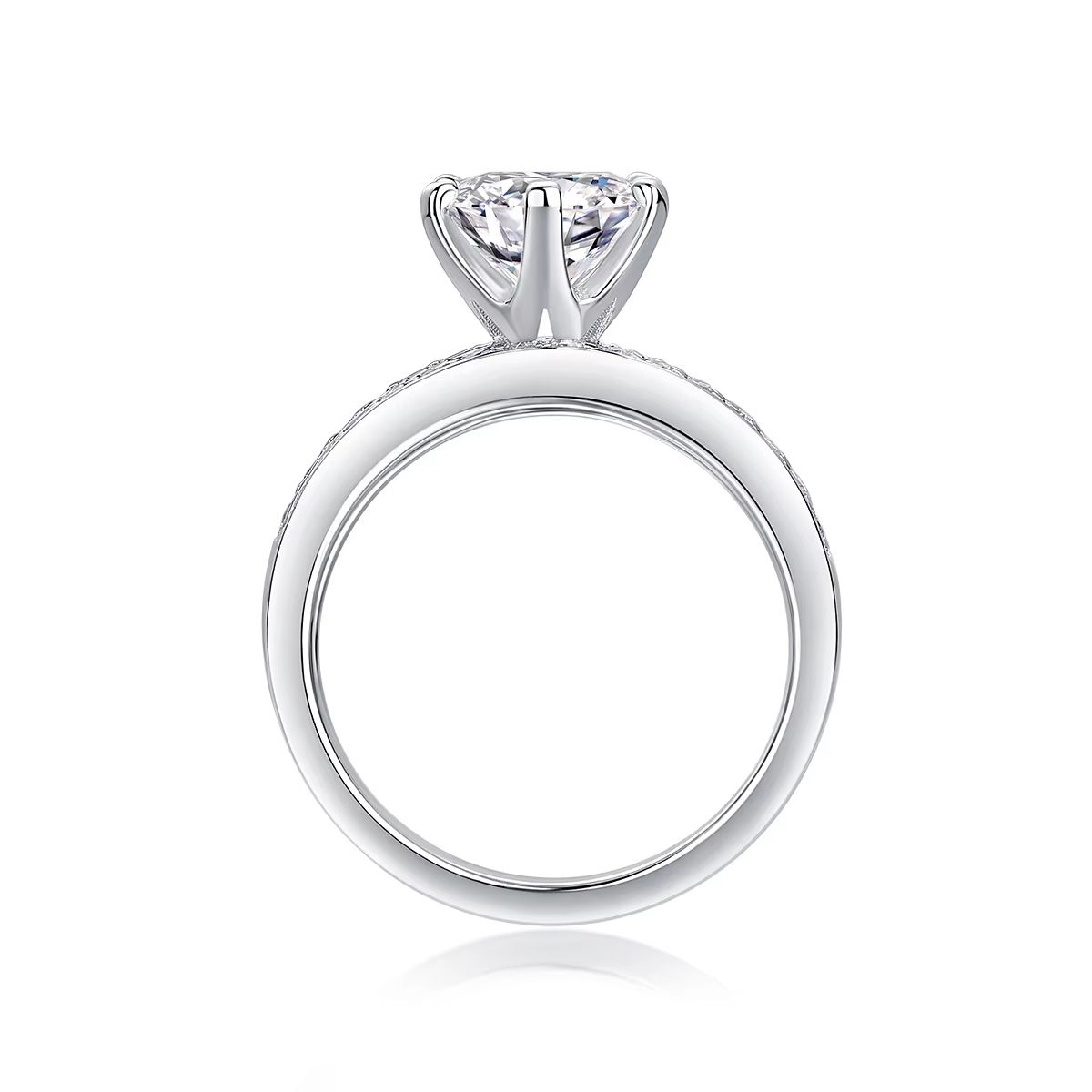 Moissanite Round S925 Sterling Silver Rings 2ct Fashionable Light Luxury Style