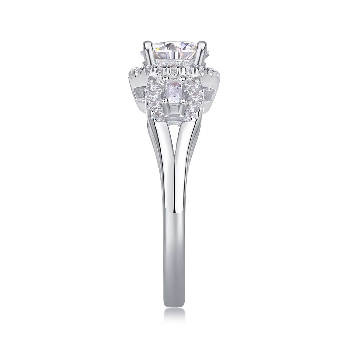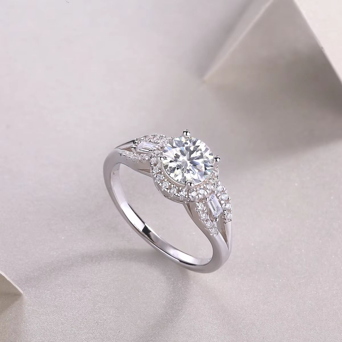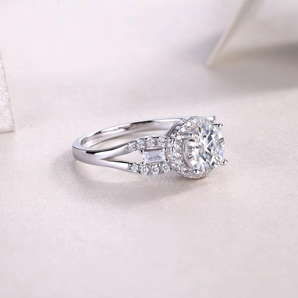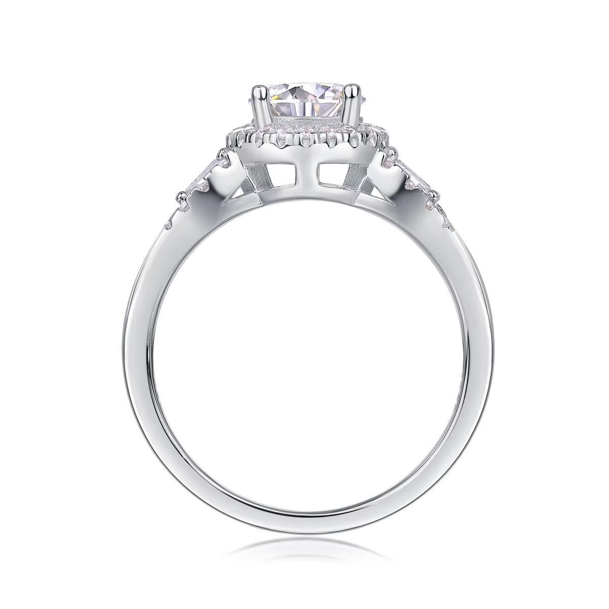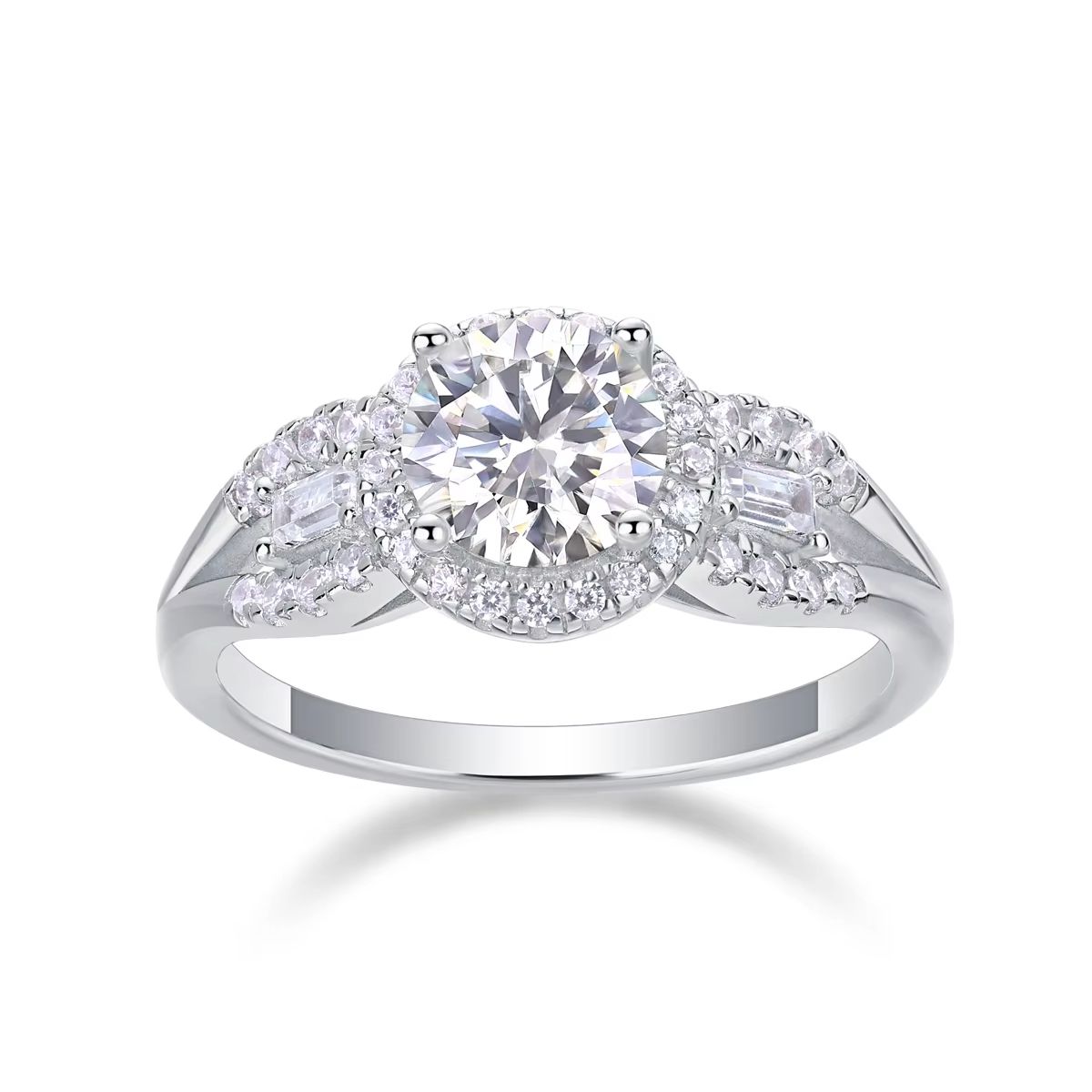 Moissanite Round Silver 1 Carat S925 Sterling Silver Wedding Engagement Ring