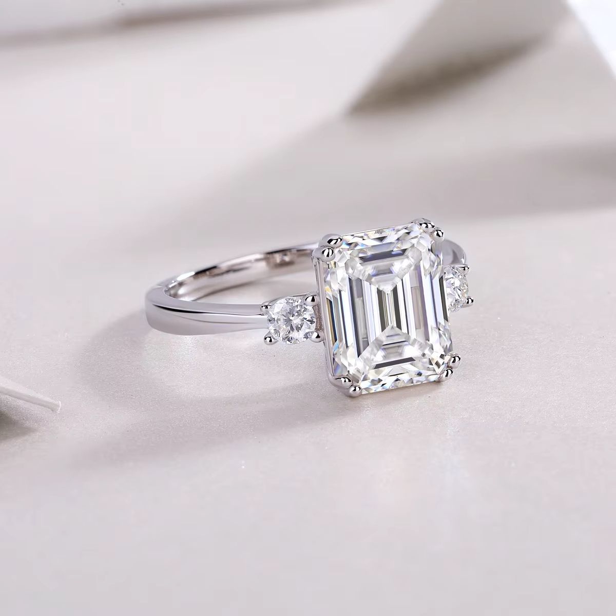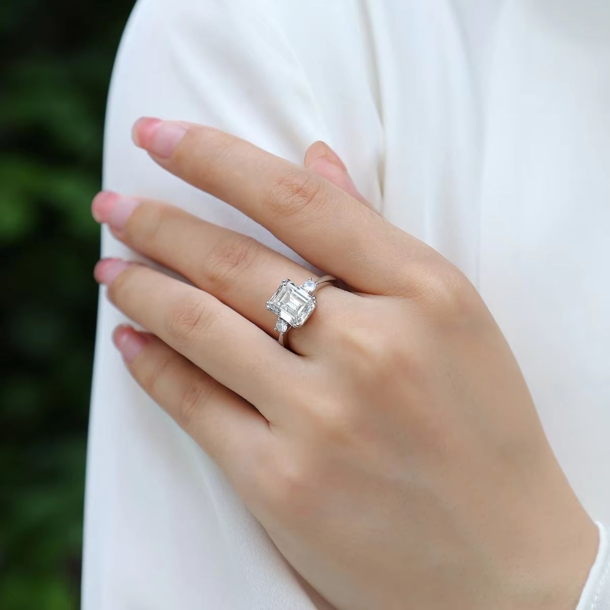 Moissanite S925 Sterling Silver Color Emerald 4.0ct Women Ring