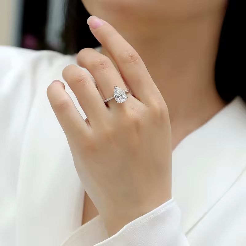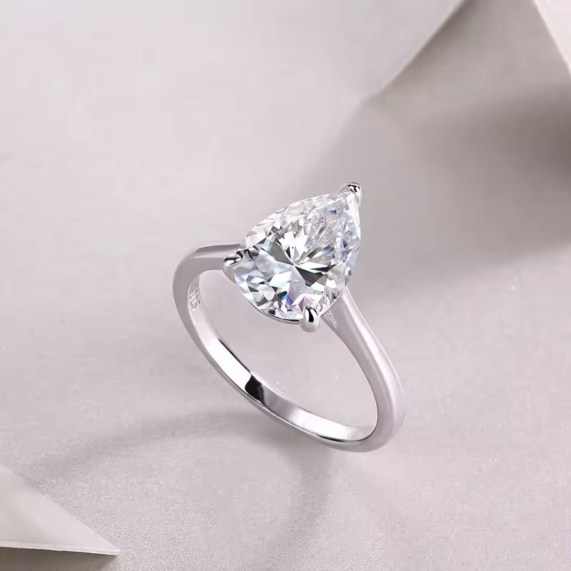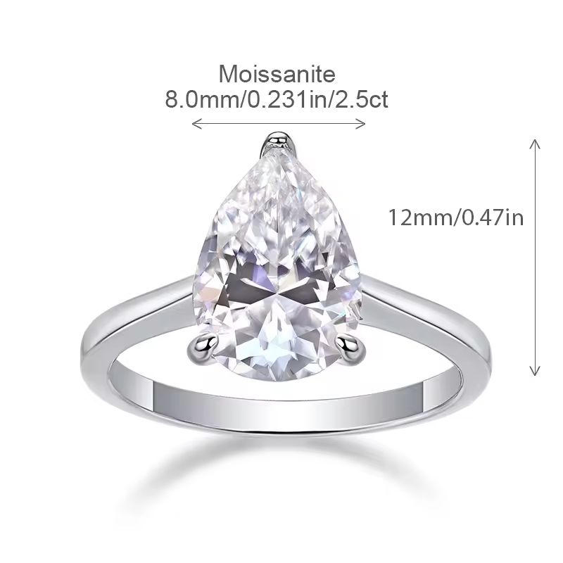 Mossanite Pear Silver Women Engagement Sterling Silver Pear Shaped Ring