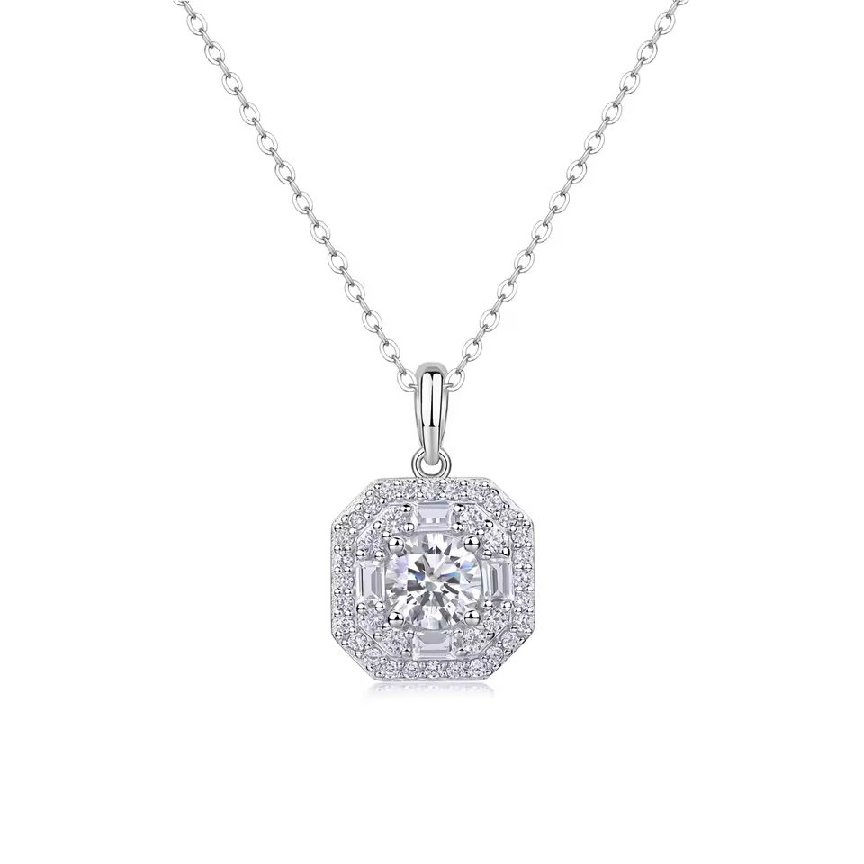 Octagon Halo 1ct Moissanite Pendant 925 Sterling Silver 18K Gold Plated Custom Elegant Jewelry Daily Wear Gift GRA Certificate