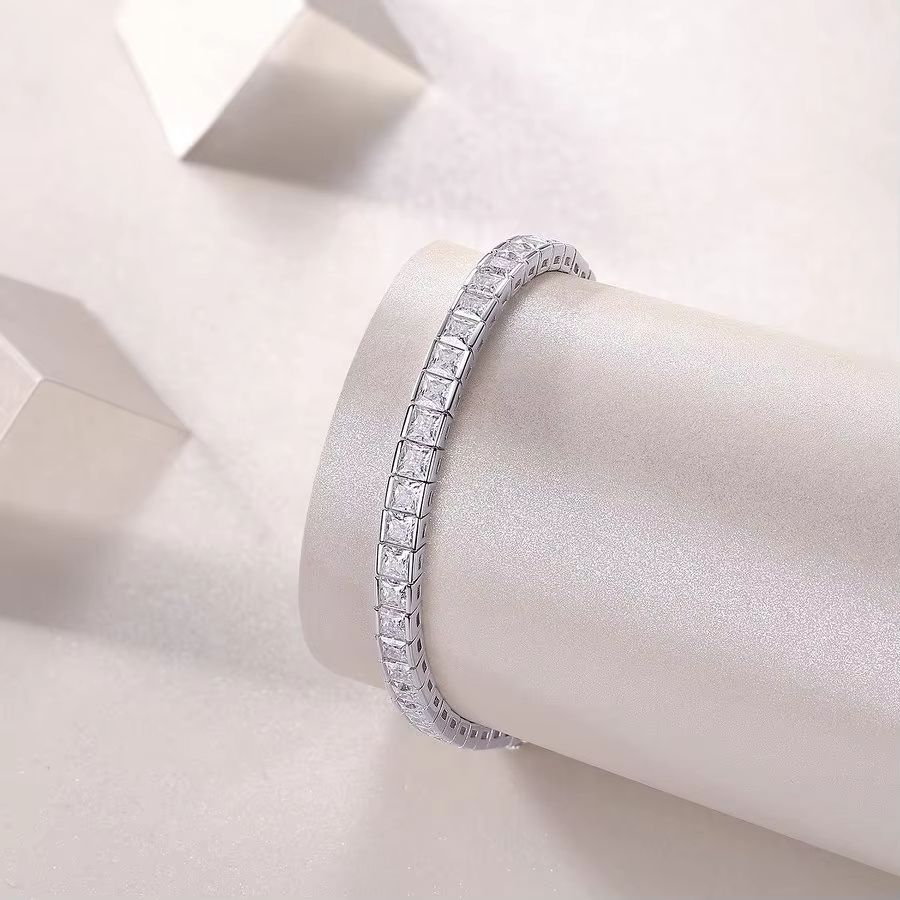 Princess 0.3ct Moissanite Princess Bracelet 925 Sterling Silver 18K Gold Plated Tennis Style