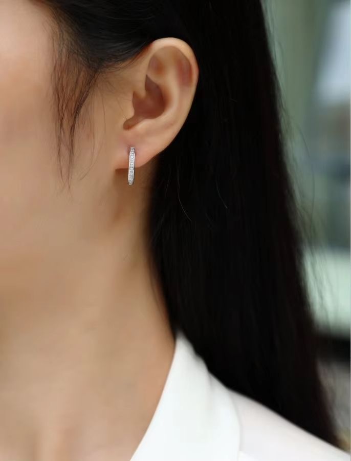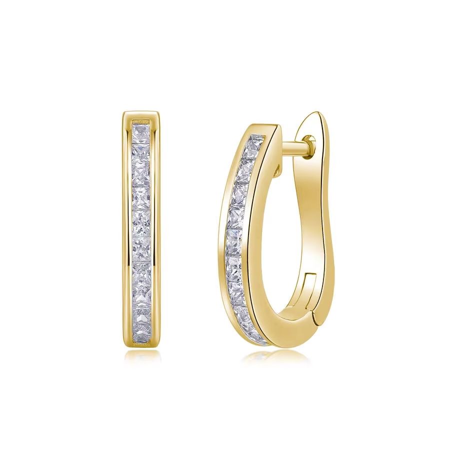 Princess Cut Moissanite Earrings 1.5x1.5mm Elegant Style Bar Shape 925 Sterling Silver Platinum Plated for Women