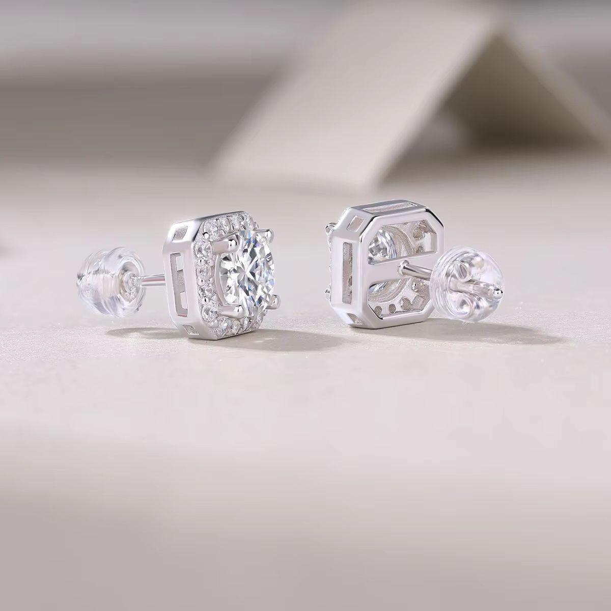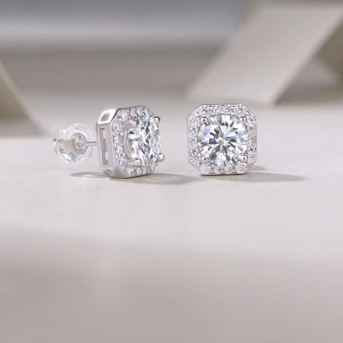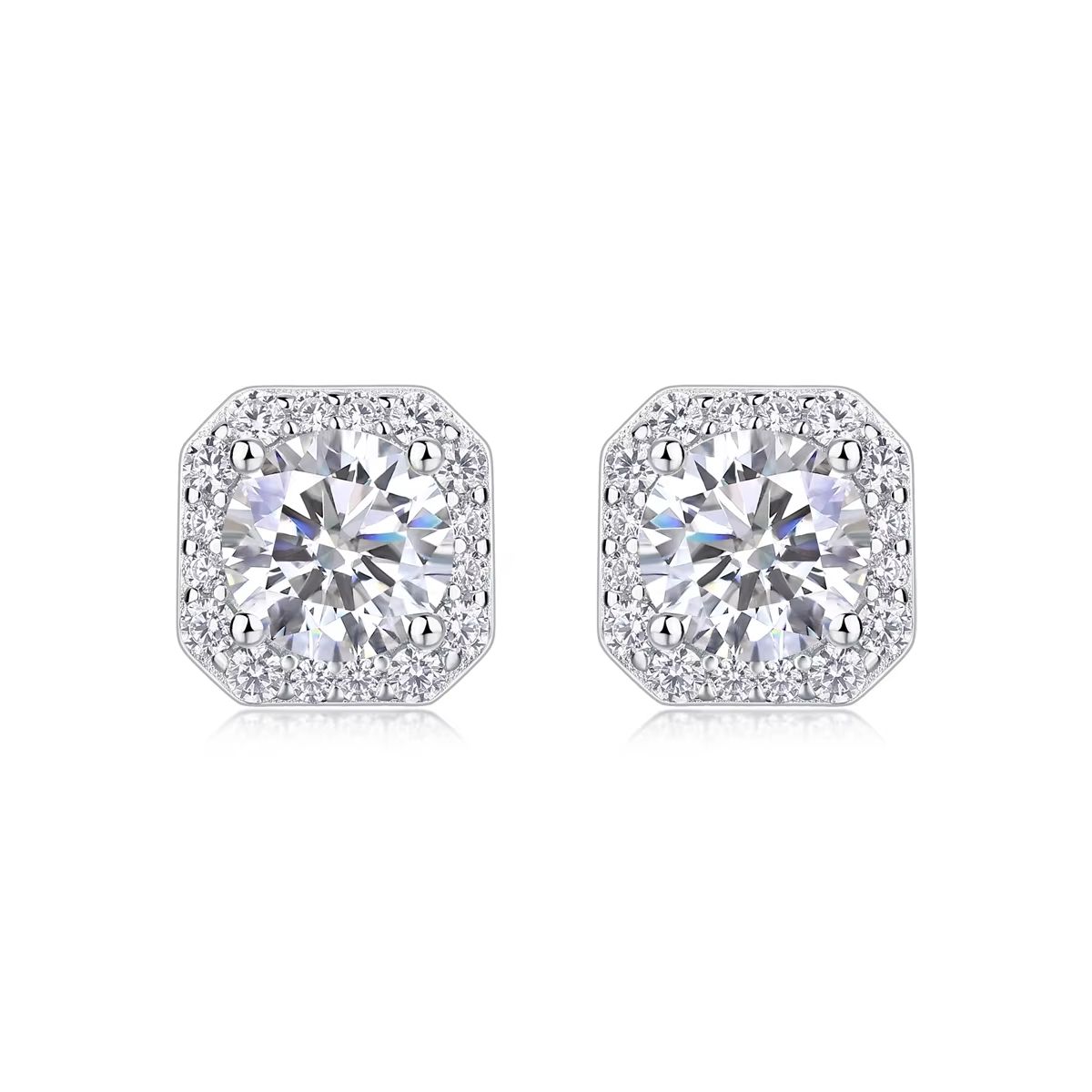 Promotional 925 Sterling Silver Square Stud Earrings Durable Jewelry with Fulled Diamond and Moissanite Various Designs