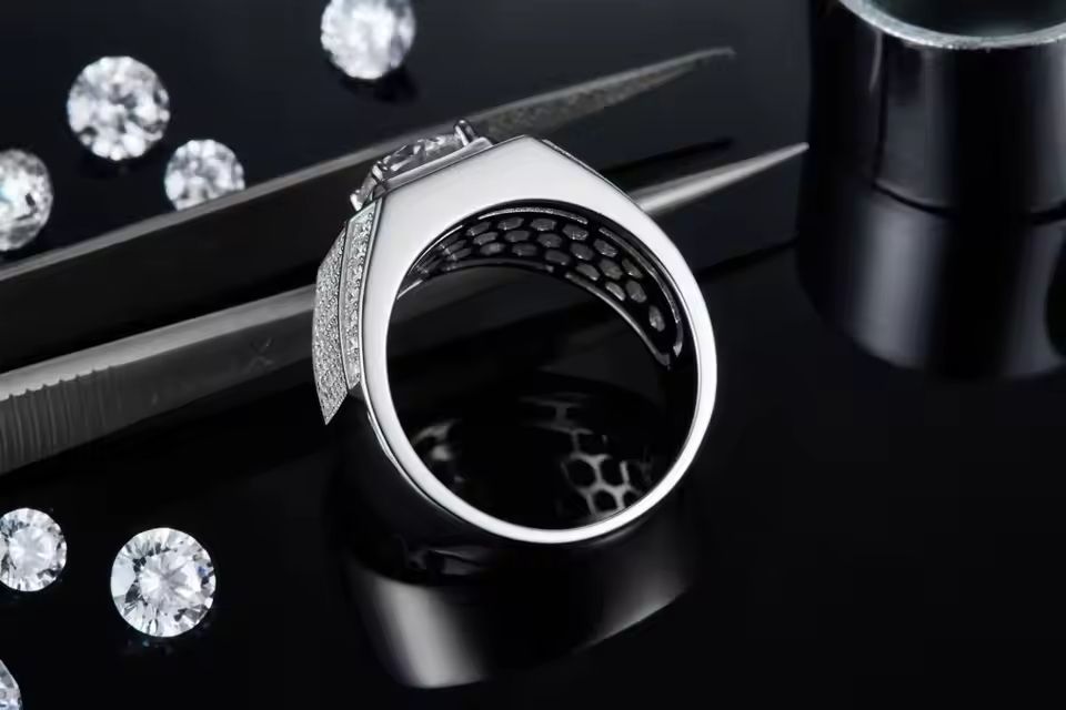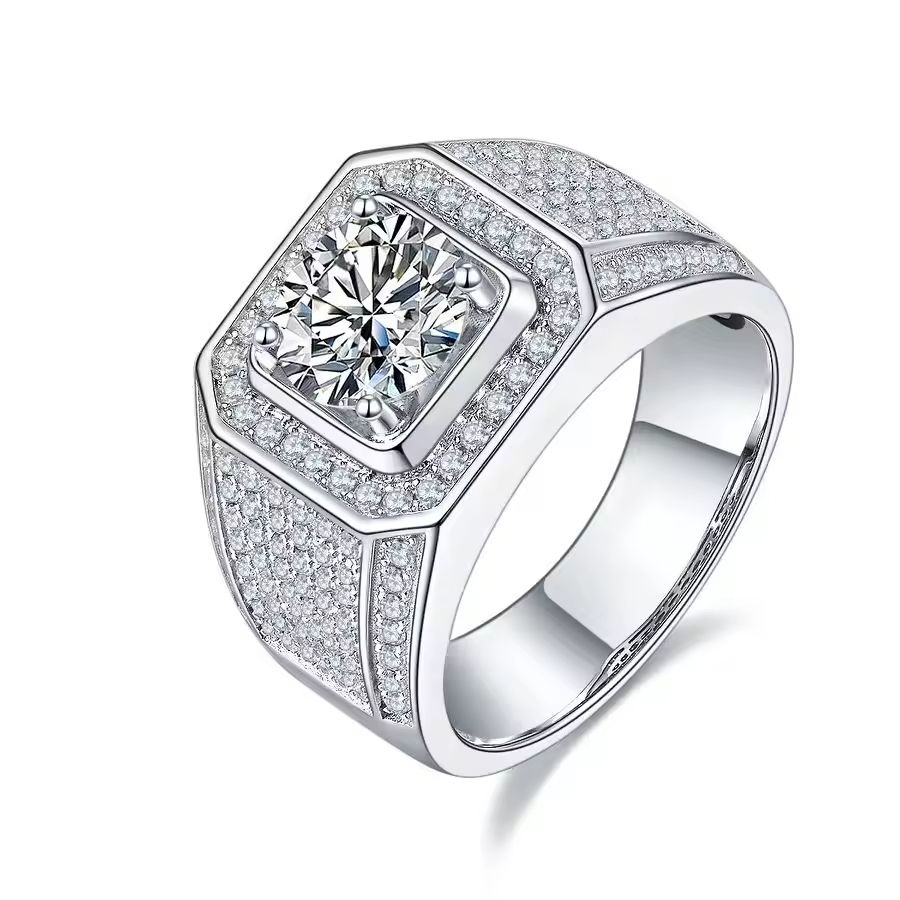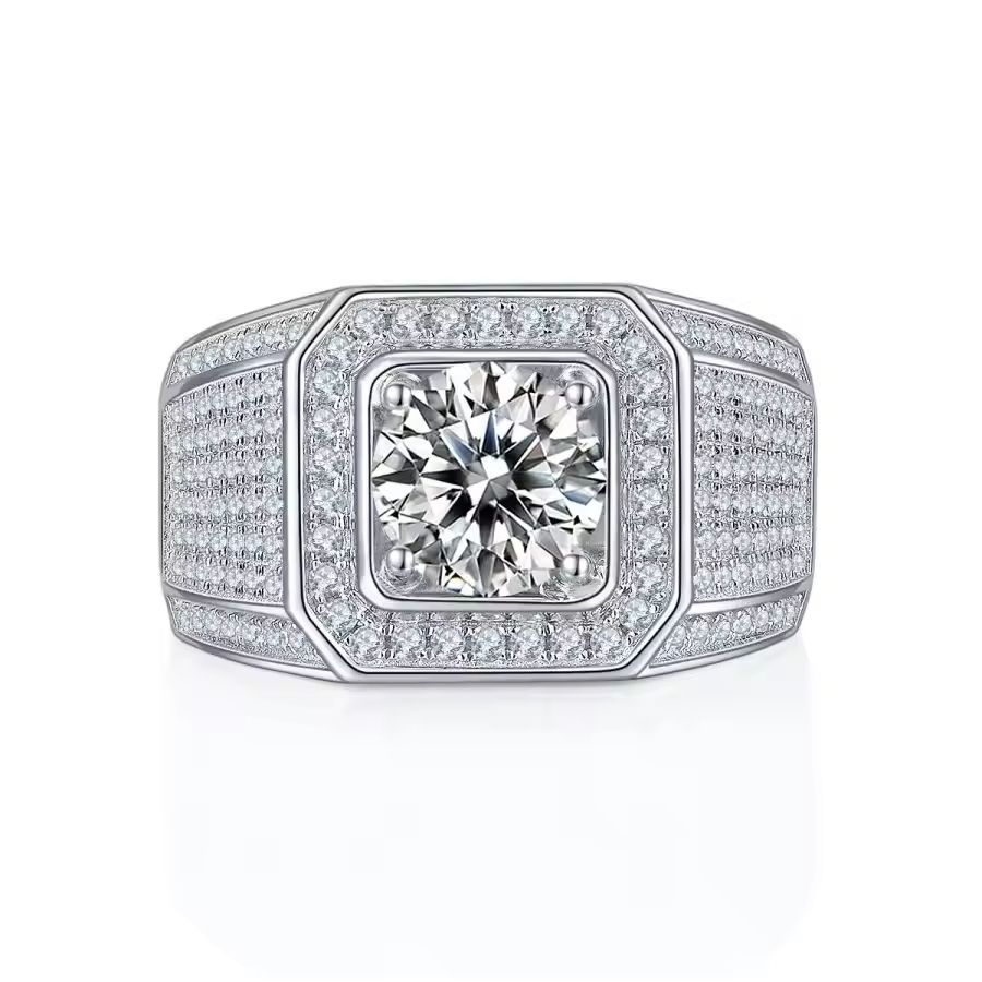 Round Moissanite Men's Ring S925 Silver with 18K Gold Plating Perfect for Engagement & Hip-Hop Style Gift