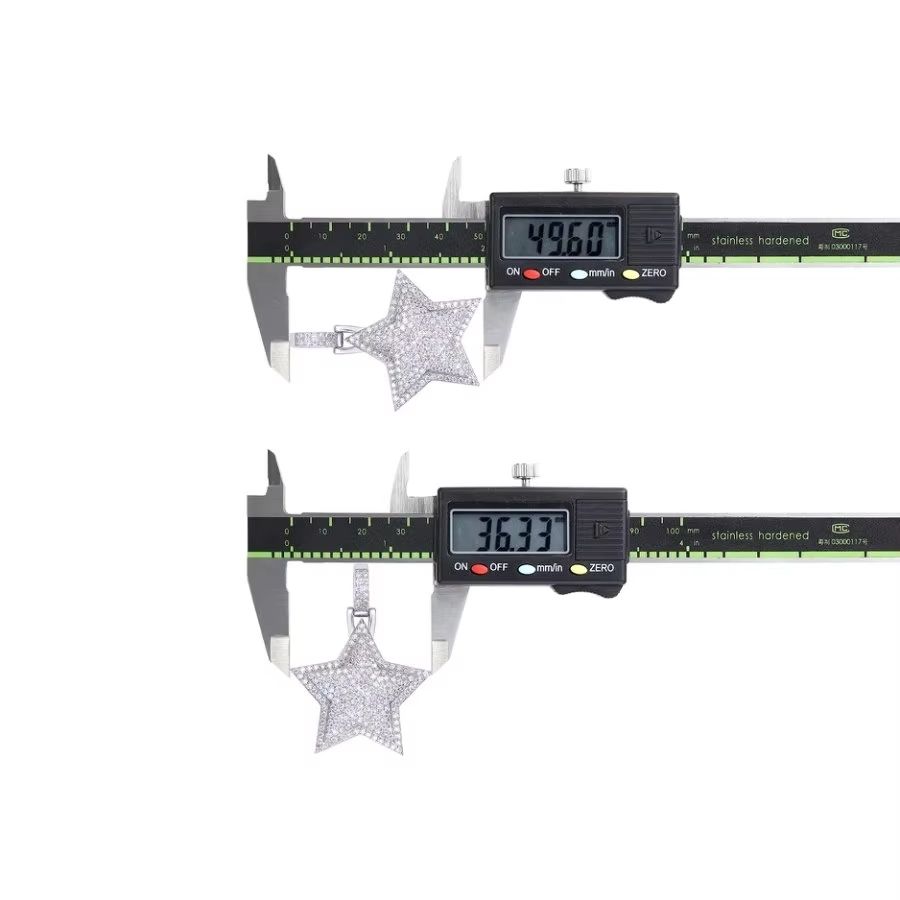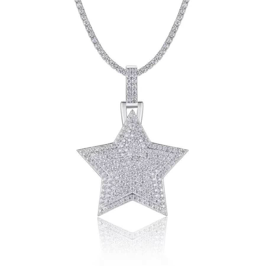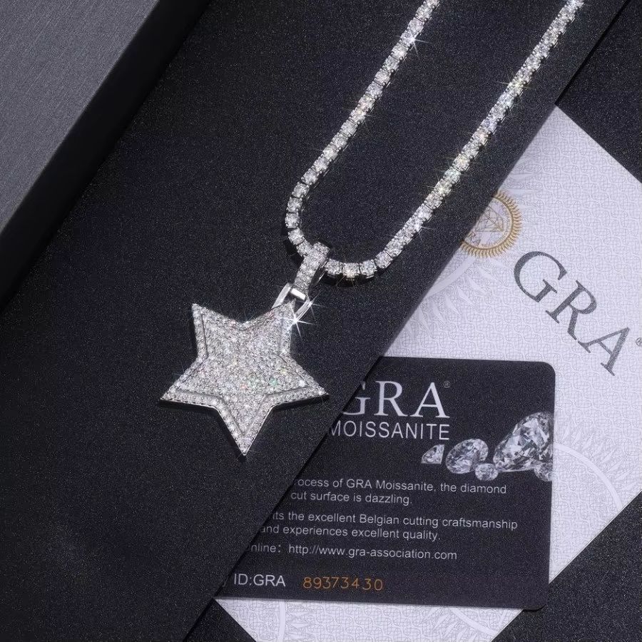 S925 Sterling Silver Hip-Hop Style Moissanite Star Pendant & Charm Hypoallergenic & Comes with GRA Certificate