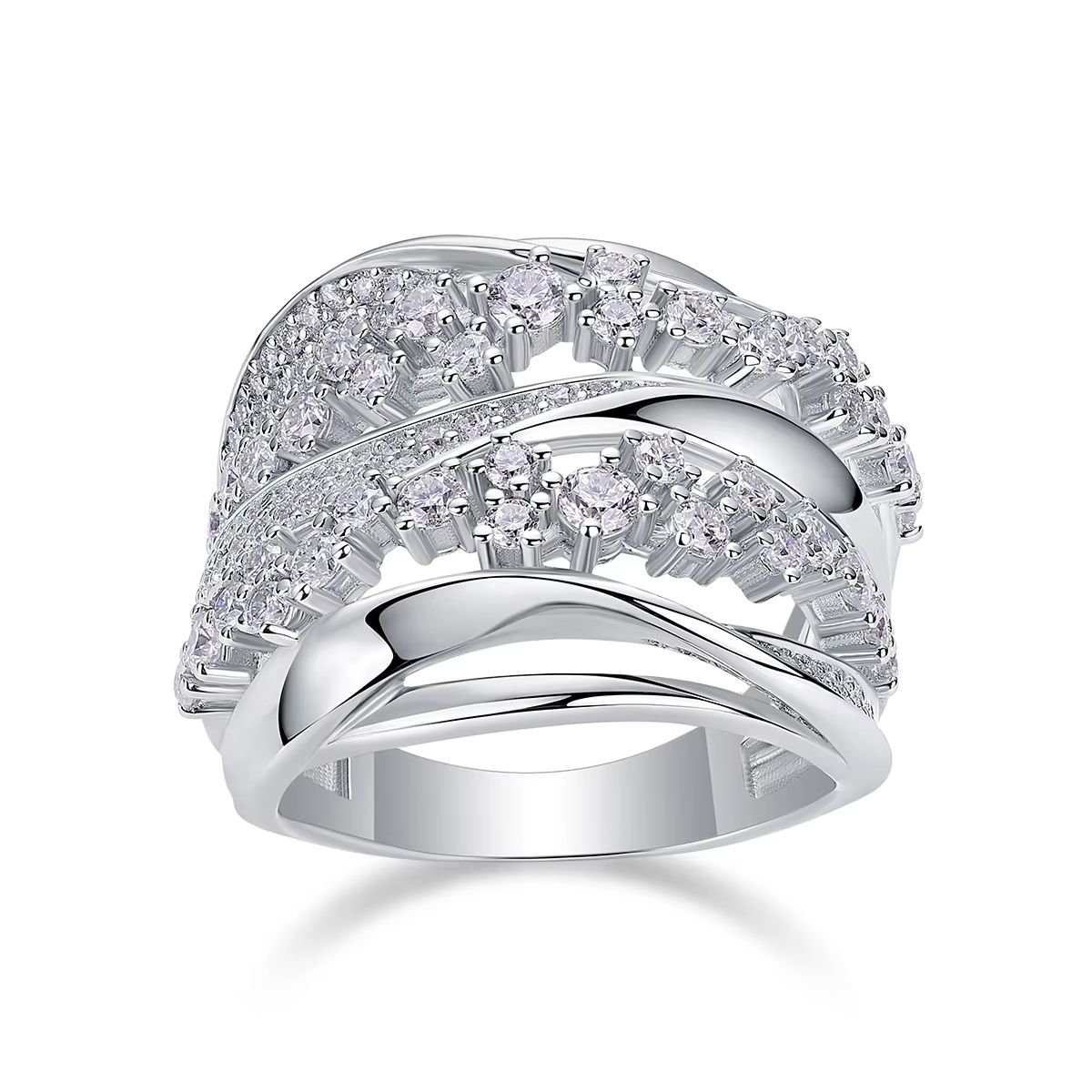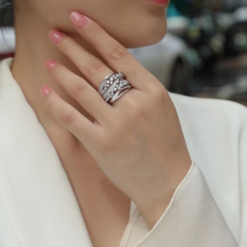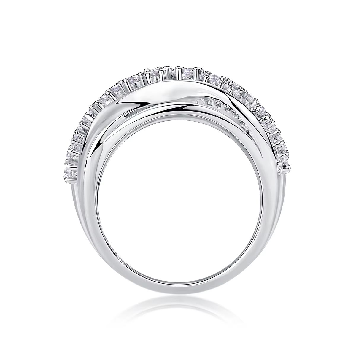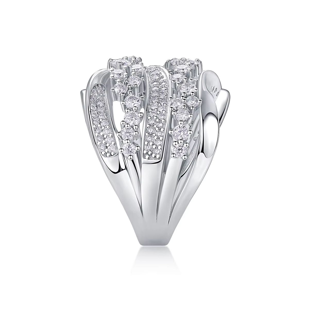 S925 Sterling Silver Multi-Row Moissanite Engagement and Wedding Ring