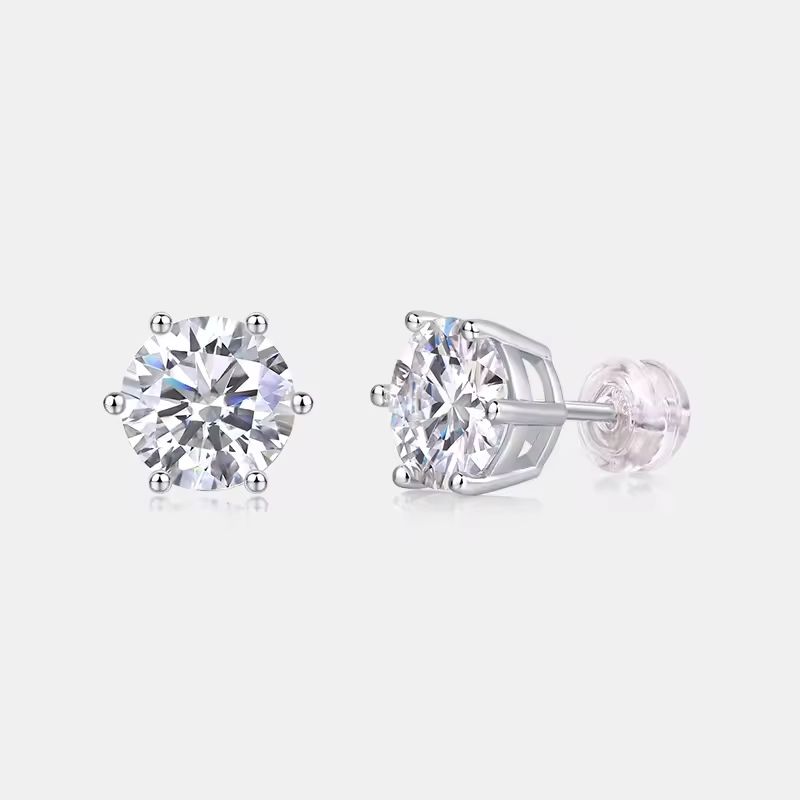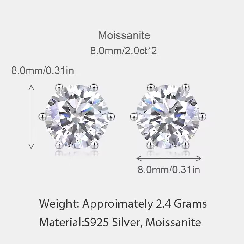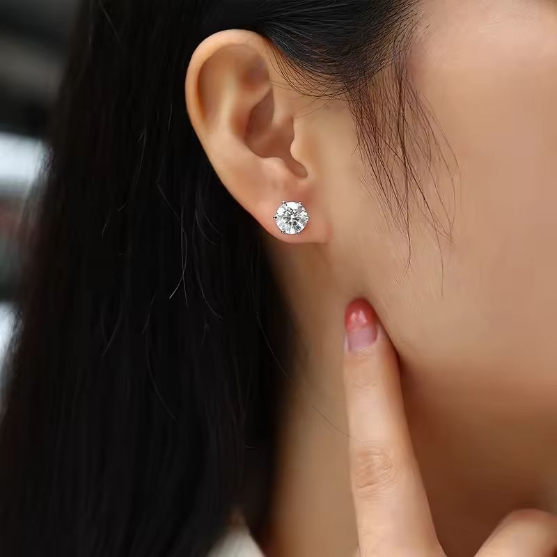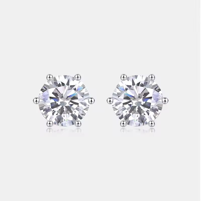 S925 Sterling Silver Prongs Diamond Jewelry Round Moissanite Earring Fashion Gold Stud Women Classic Earrings