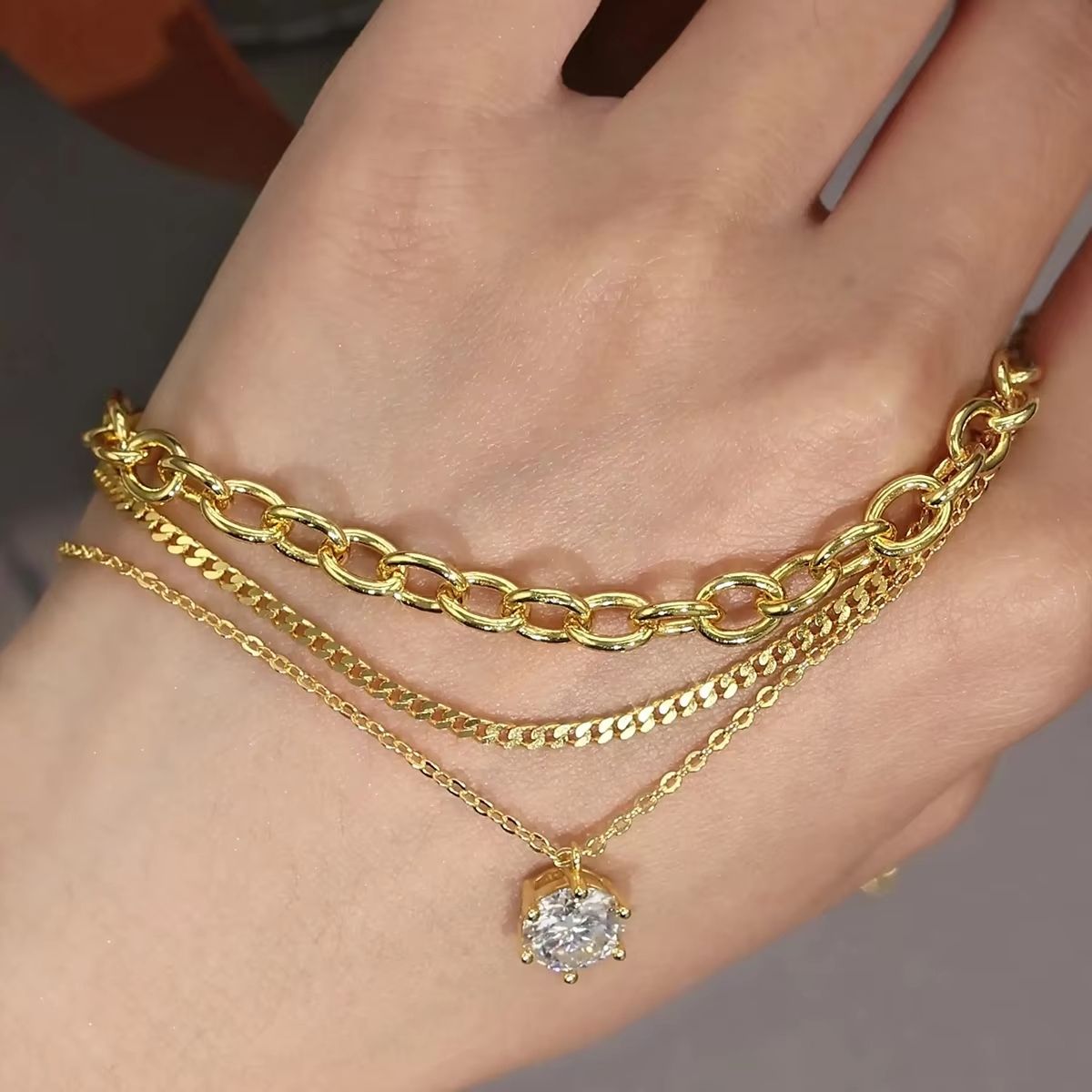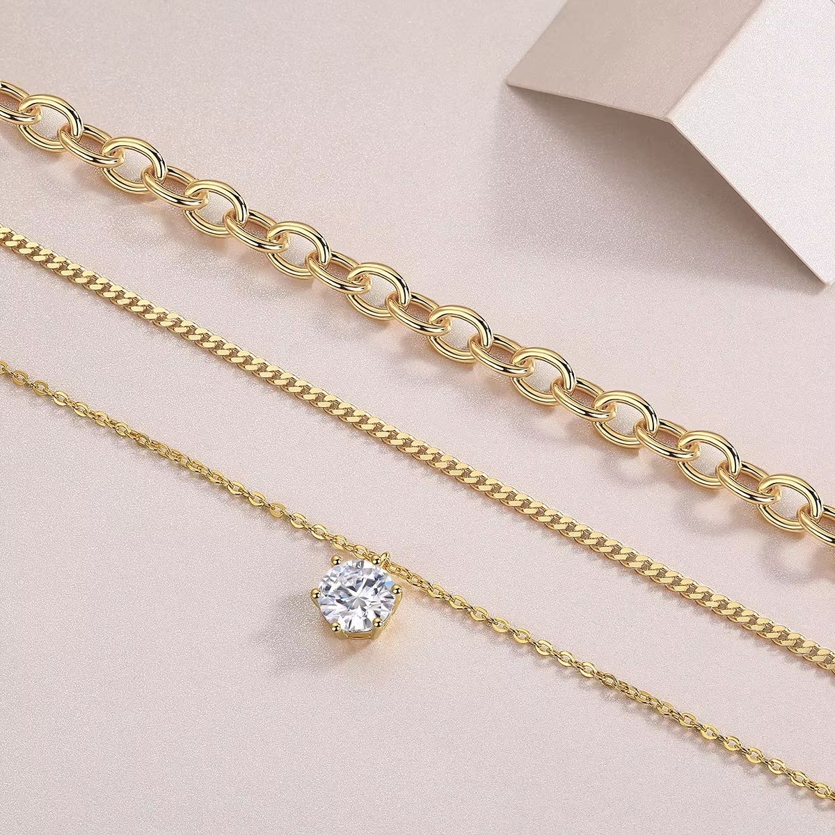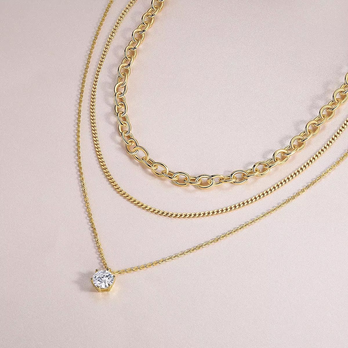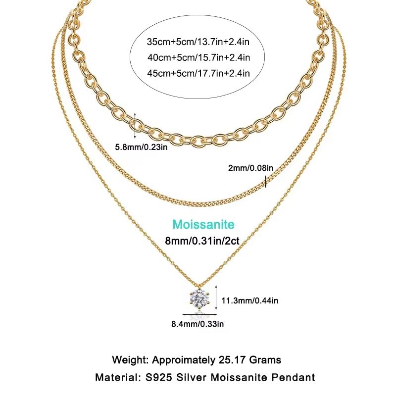 Simple Ins Style 925 Silver Moissanite Diamond Jewelry Three Layers Sweater Chain Pendant with Thick Thin Necklaces