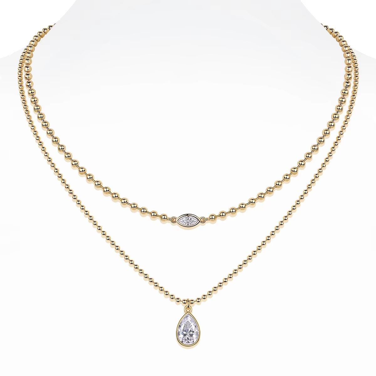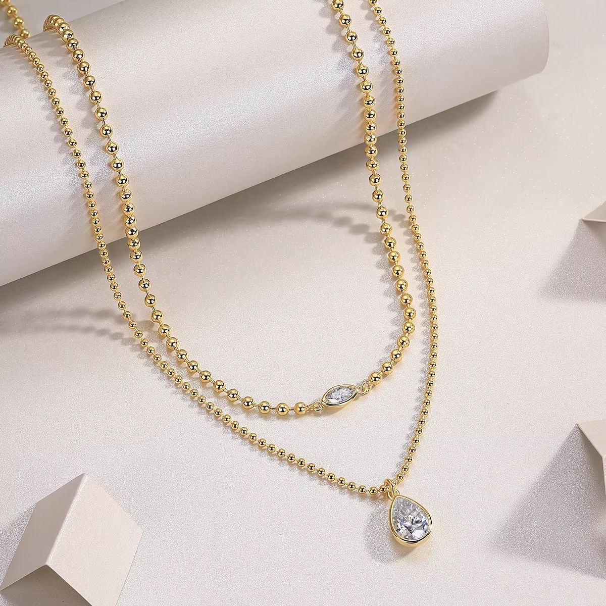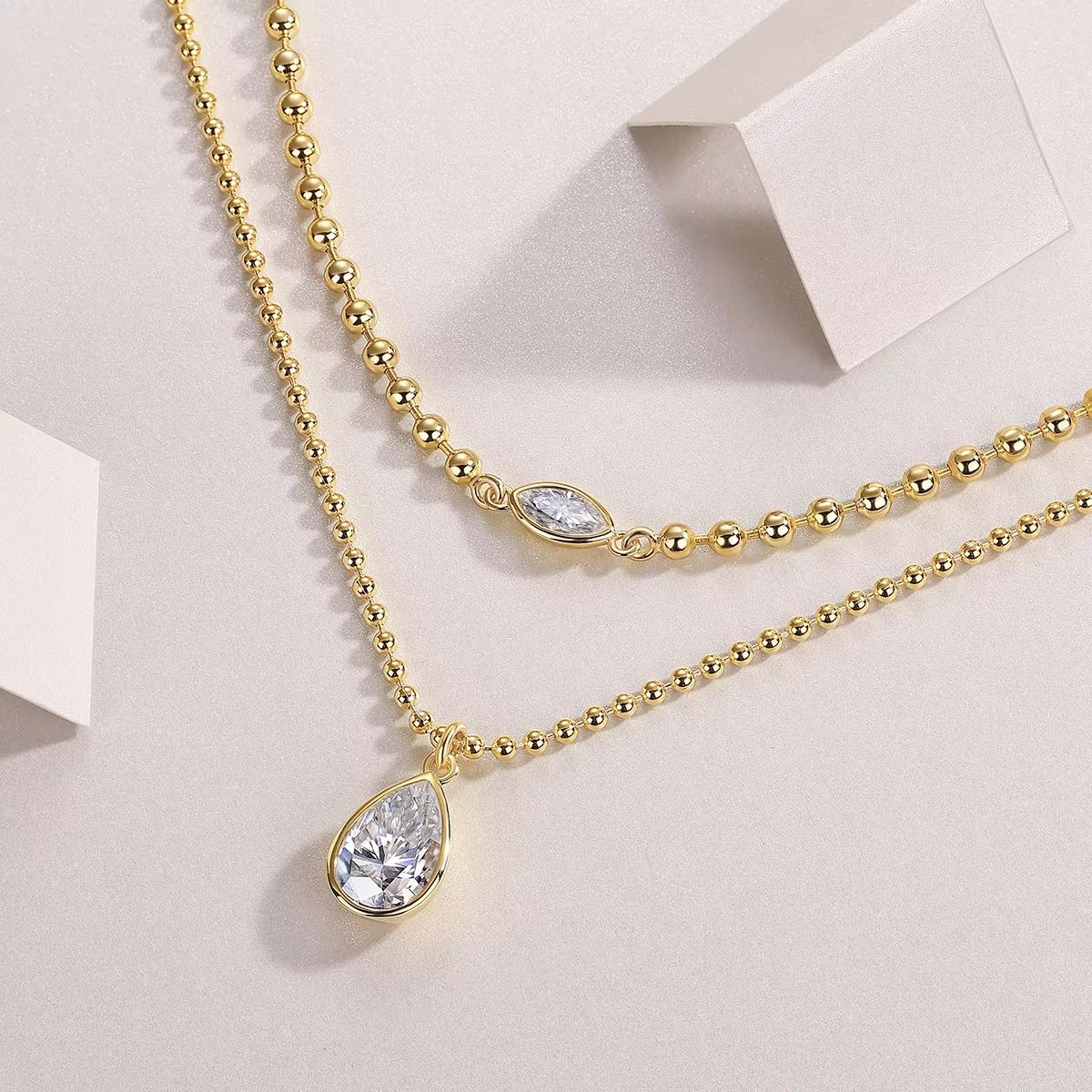 Stacked Design 925 Sterling Silver D Color Moissanite Pendant with Gold Plated Stacking Chain Stylish Layered Necklaces