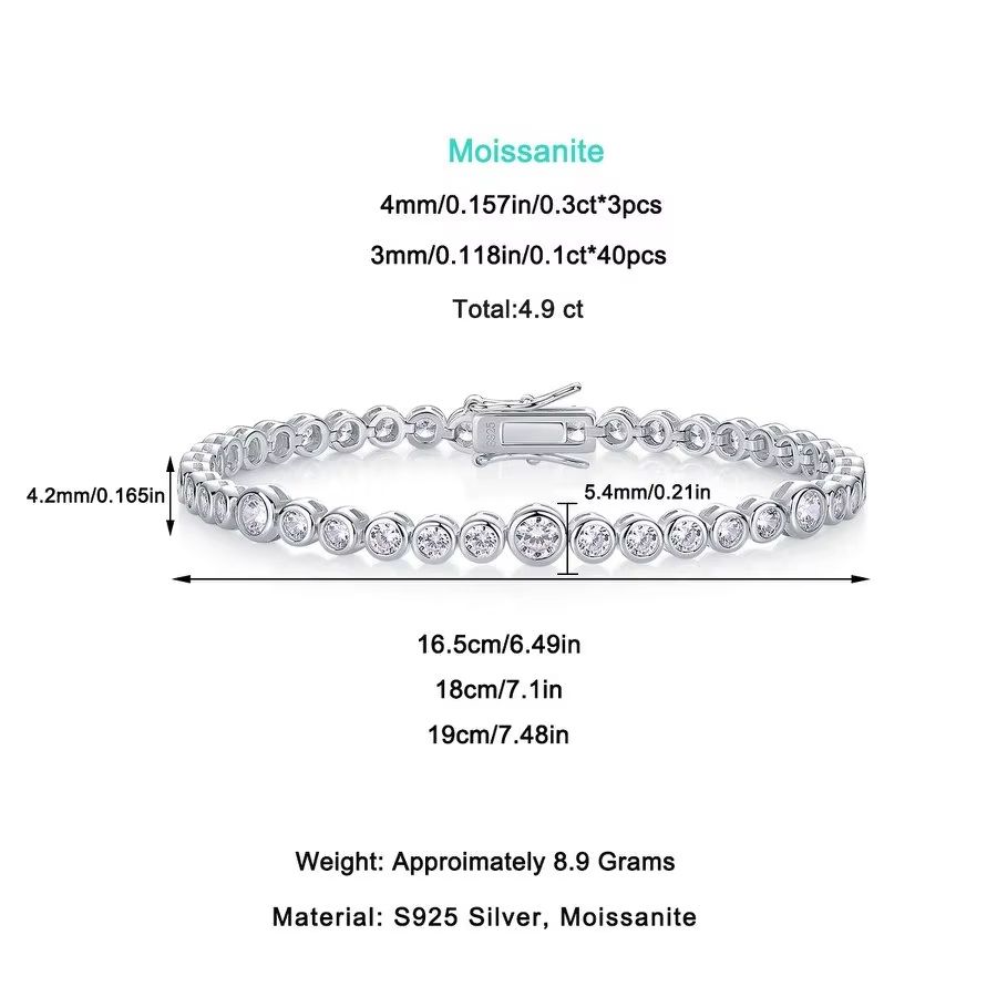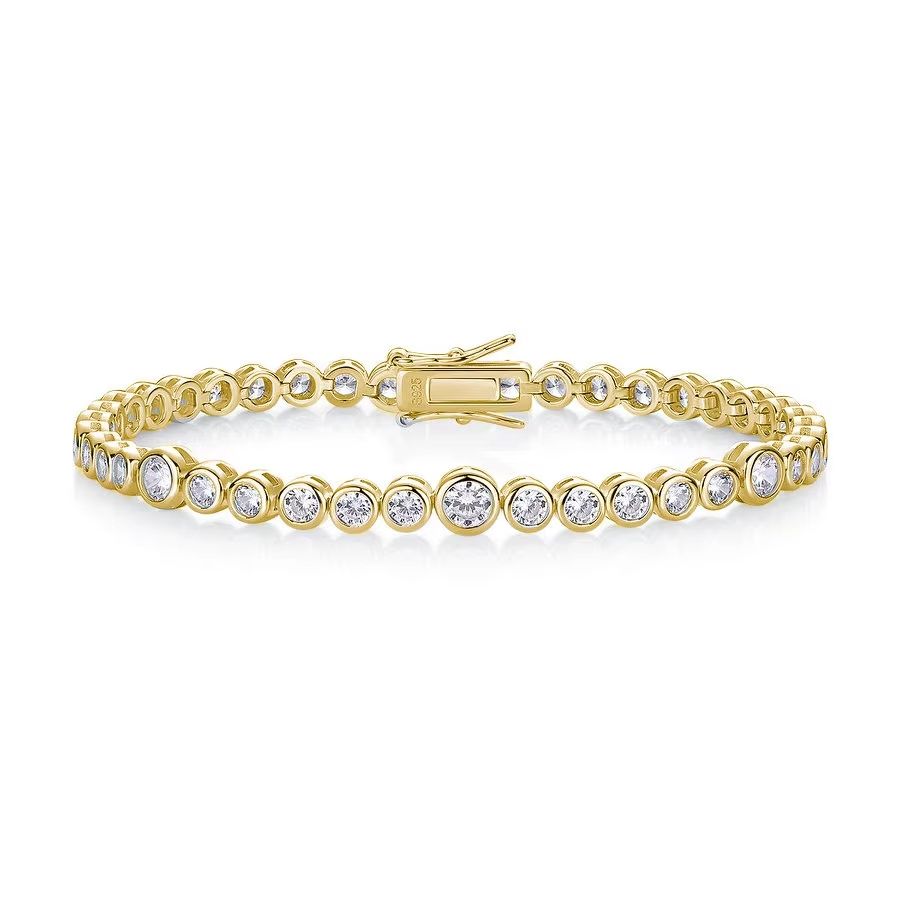 Unisex Luxury Tennis Bracelet S925 Sterling Silver Bezel Lab Diamond Bracelet Gold