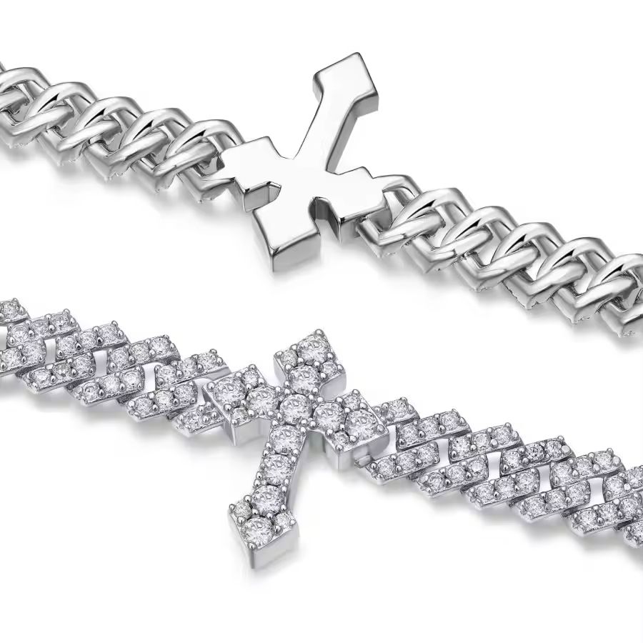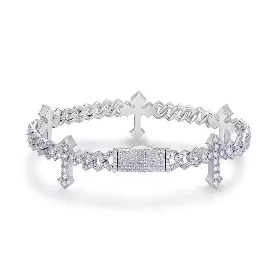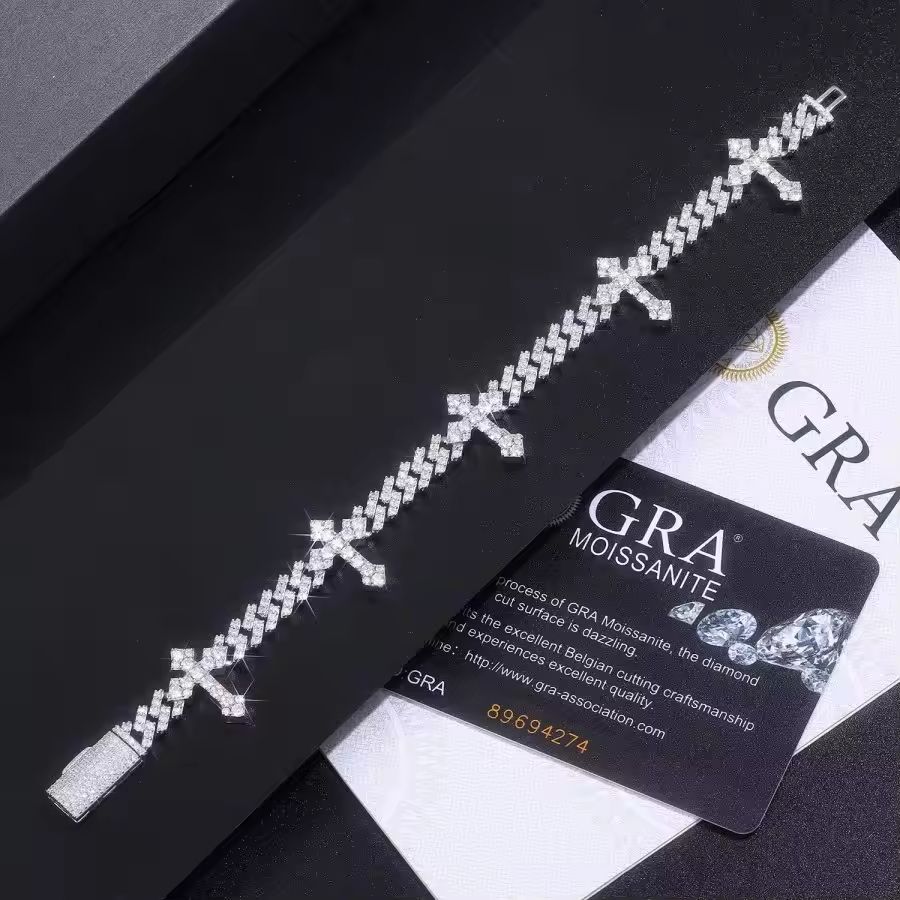 Unisex Moissanite Tennis Bracelet with Cross Arrow Design Lab-Created 925 Silver with 18K Gold Plating
