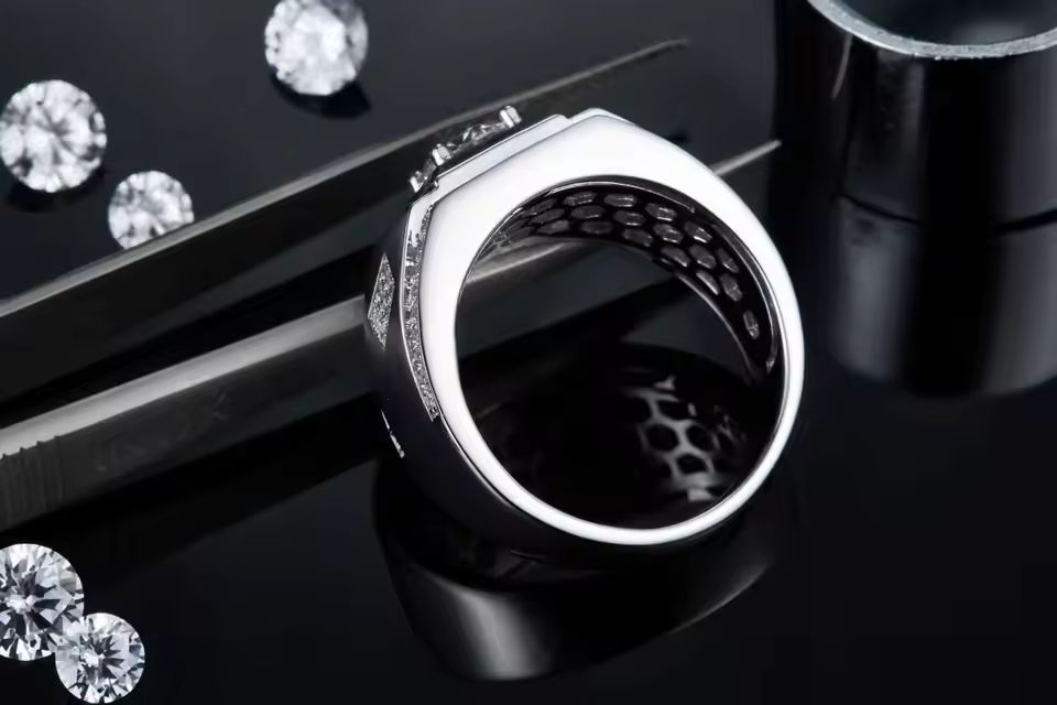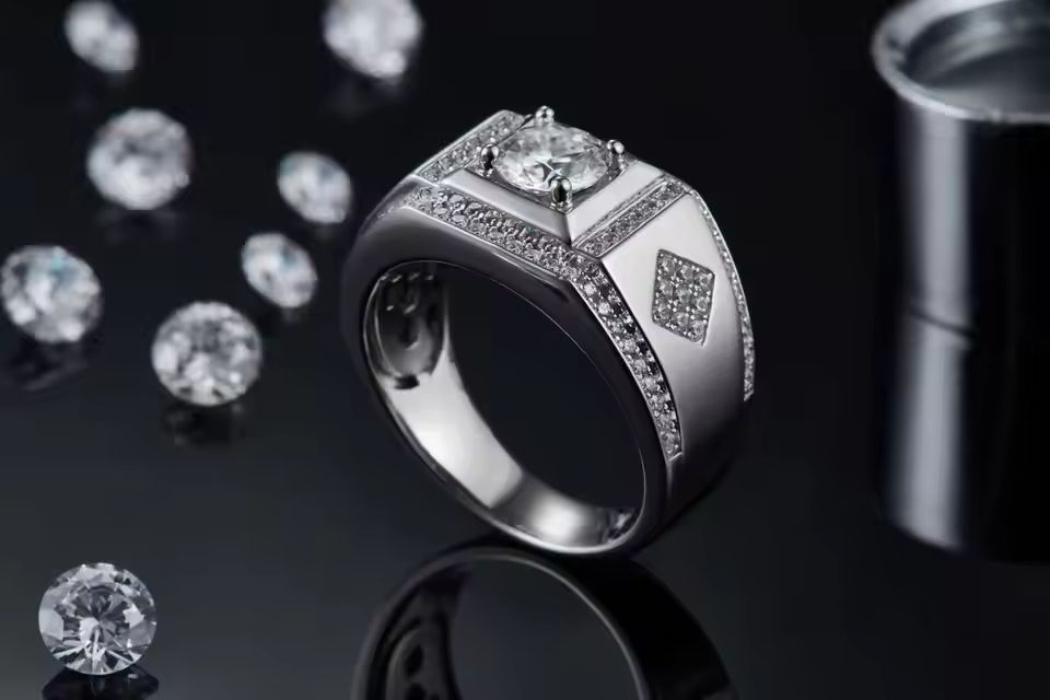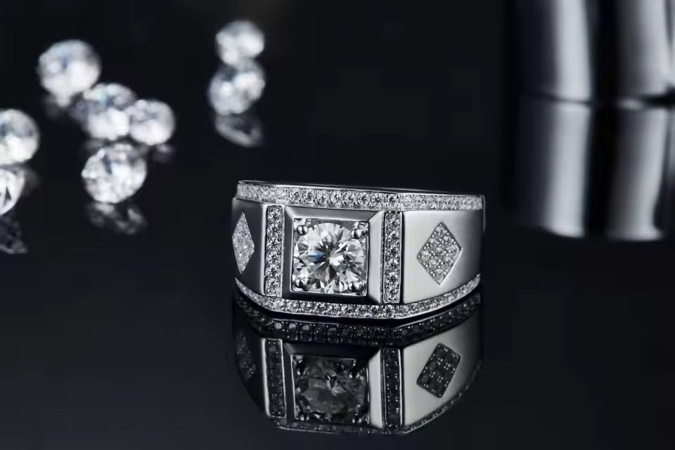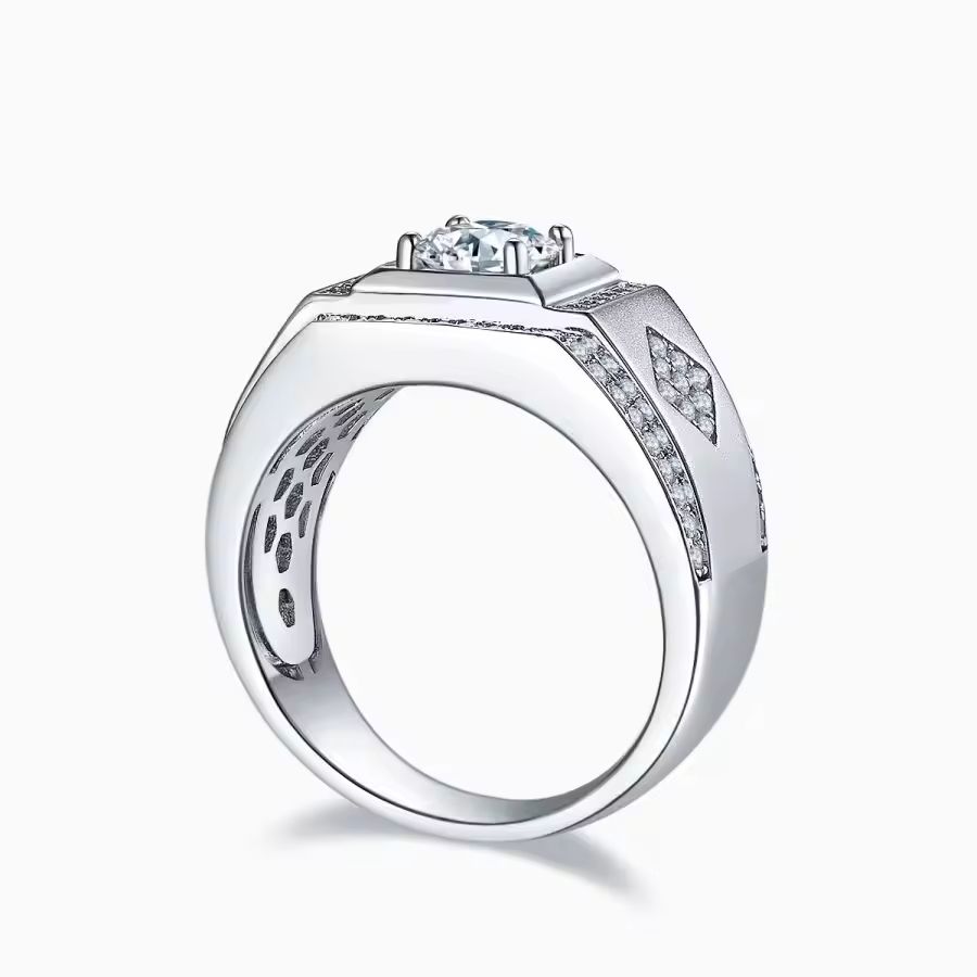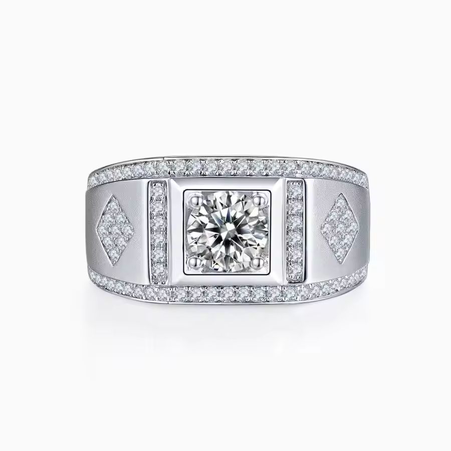 Vintage 1 Ct Round Cut Moissanite Men's Ring S925 Silver with Rectangular Setting Perfect for Engagement and Wedding