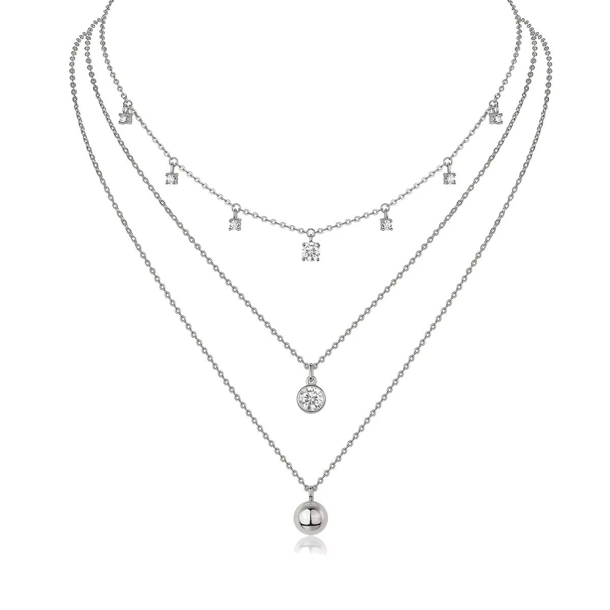 Women's 2ct Moissanite Necklace 18K Gold Plated 925 Sterling Silver with Three Chain Design