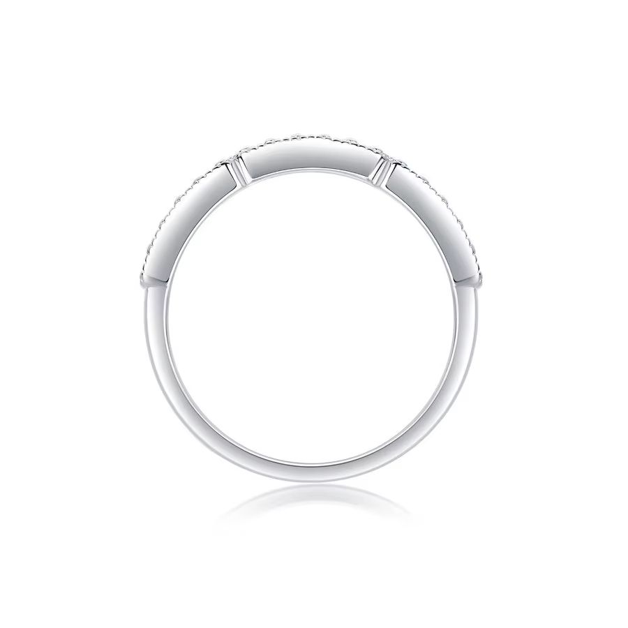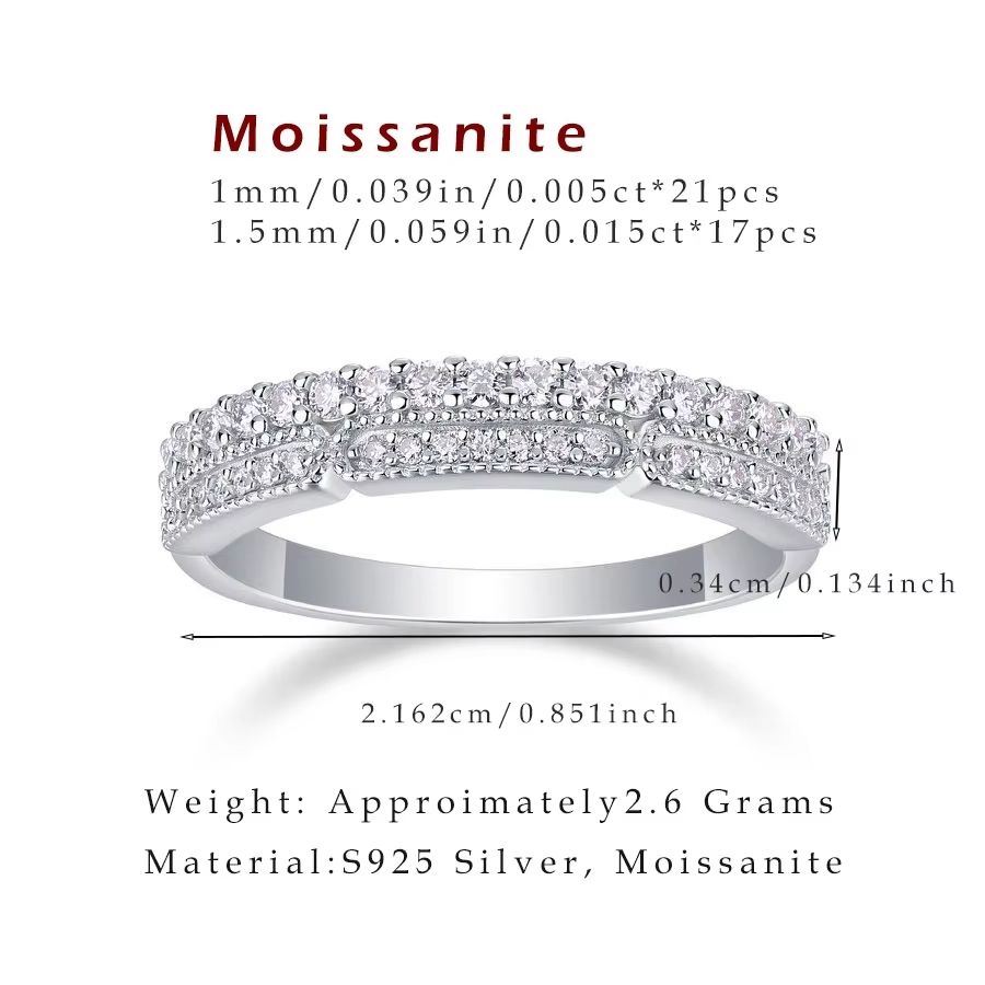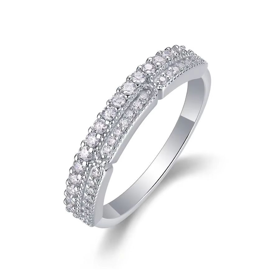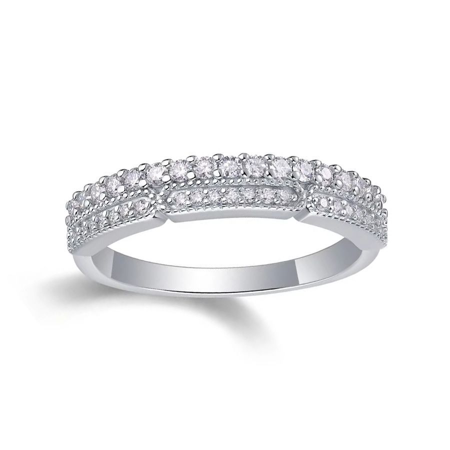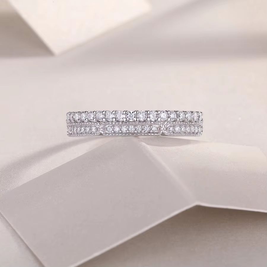 Women's S925 Sterling Silver Ring 18K White Gold Plated Double Row Pave Setting Classic Band
