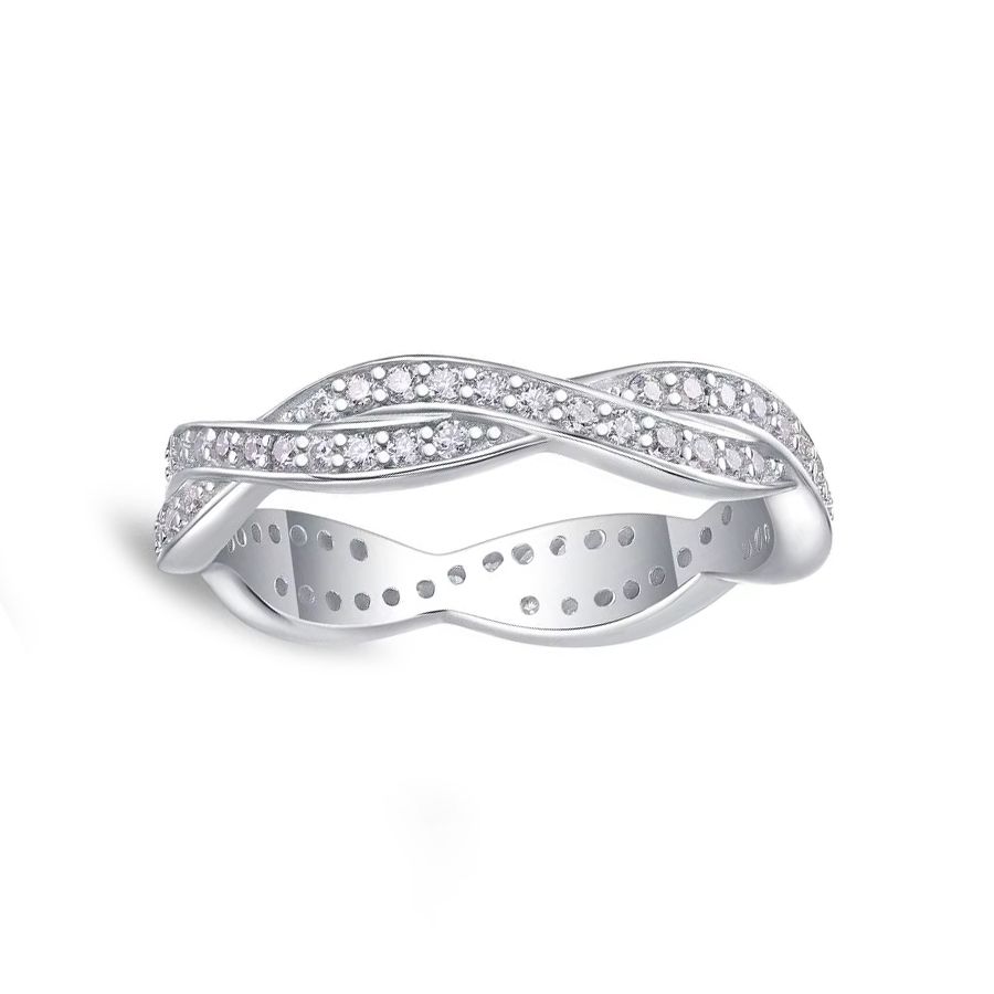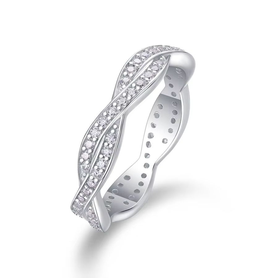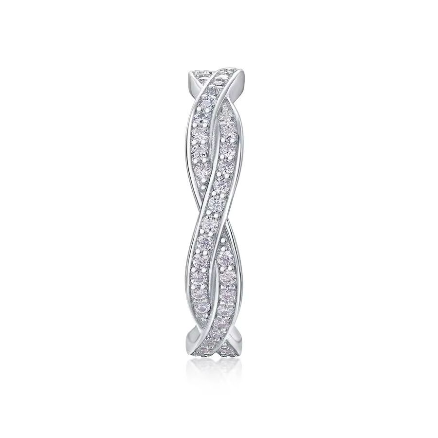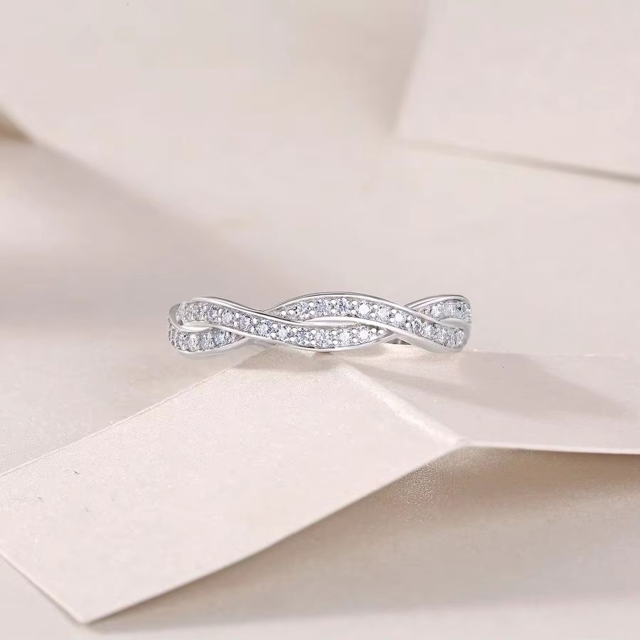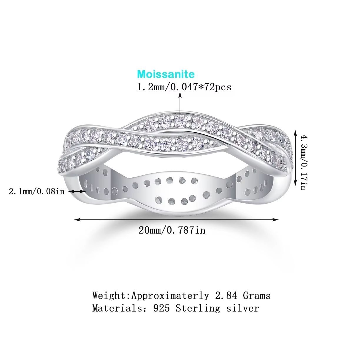 Women's S925 Sterling Silver Wedding Band Moissanite Twisted Design Anniversary Ring