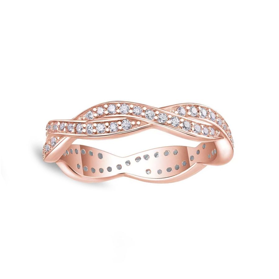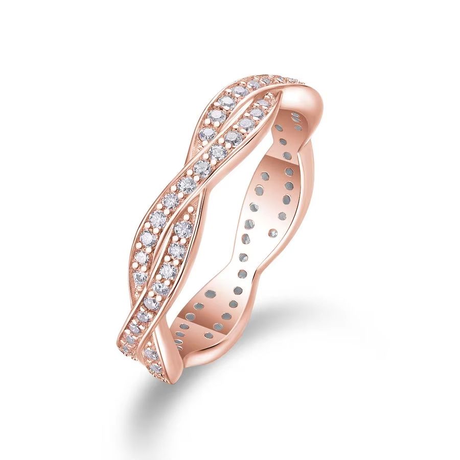 Women's S925 Sterling Silver Wedding Band Moissanite Twisted Design Anniversary Ring
