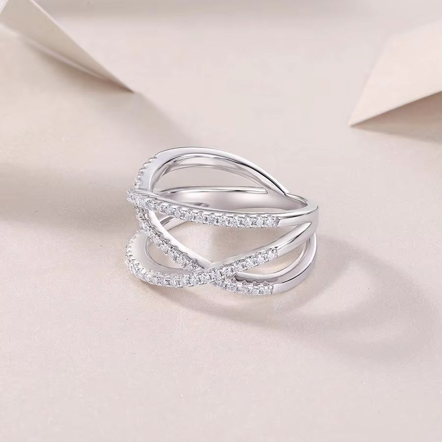 Women's Unique S925 Sterling Silver Crisscross Moissanite Ring Wedding or Anniversary Gift with Unique Design