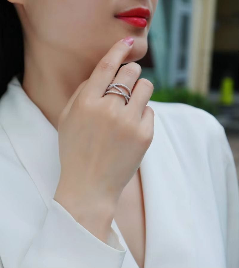 Women's Unique S925 Sterling Silver Crisscross Moissanite Ring Wedding or Anniversary Gift with Unique Design